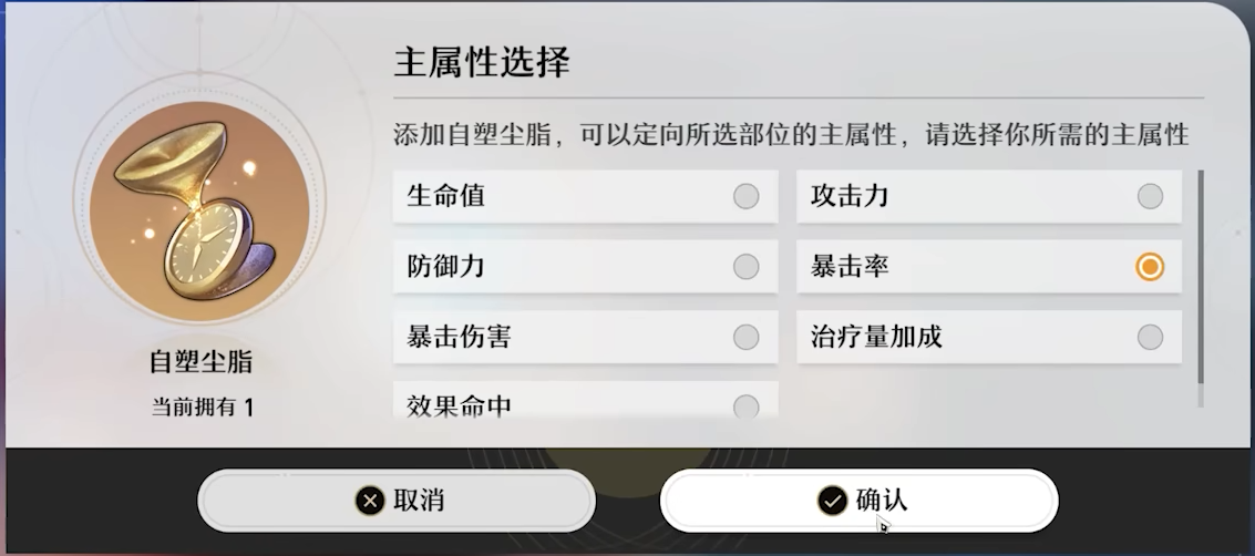 注:遗物锻造不选择主属性不消耗自塑尘脂。(遗物锻造系统开拓等级40自动开启)