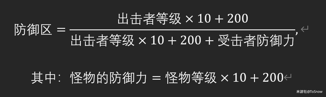 ■防御:除佩拉拥有减防能力以外,其余时候防御区表现为等级压制。公式如下: