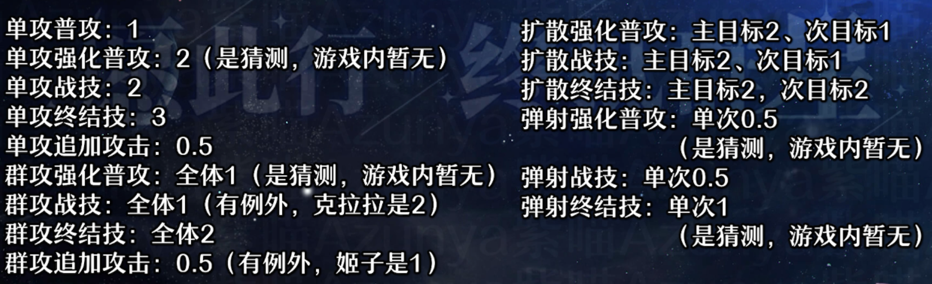 这些攻击类型名词不懂的可以去看我入坑指南第三期有详细介绍,其中追加攻击是一种额外插入回合的攻击手段)