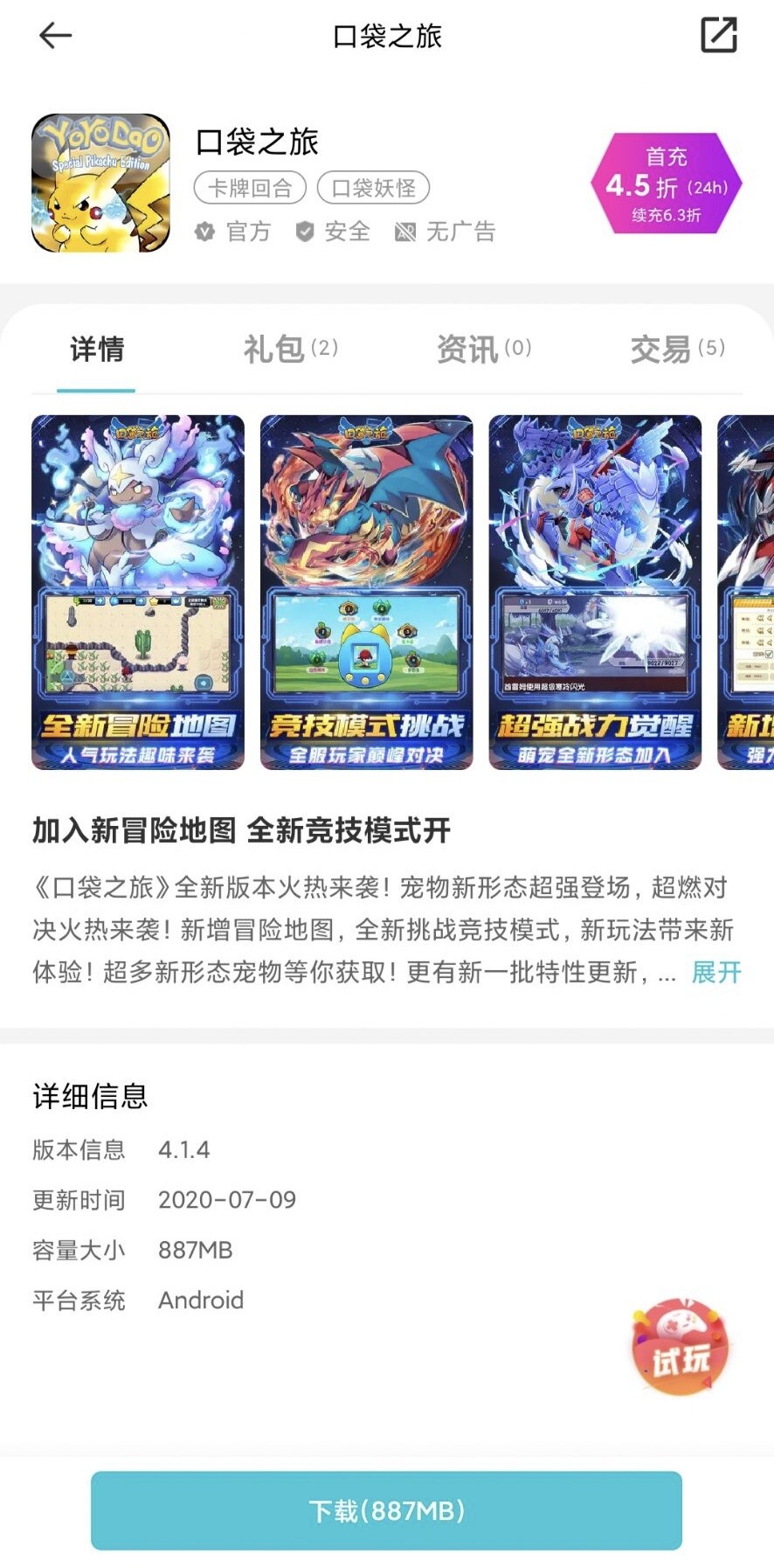 答:TT的用户去他们游戏中心搜下口袋之旅。看看提示,搜索口袋之旅,4.1.4版本的,如图显示。