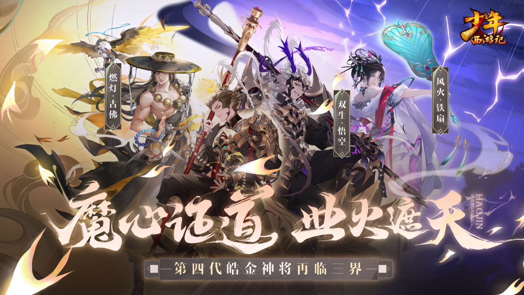 魔心证道,业火遮天!全新第四代皓金神将双生·悟空、燃灯·古佛、风火·铁扇再临三界!天官赐福活动同步开启,参与活动赢大量皓金神将/法宝碎片!