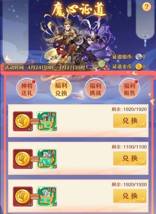 使用证道金币可兑换皓金神将礼盒四、皓金法宝礼盒四、皓金神将九选一宝箱、皓金法宝九选一宝箱、幻金神将任选箱、幻金法宝任选箱、万能法宝碎片、皓灵髓、皓灵石等珍稀资源!