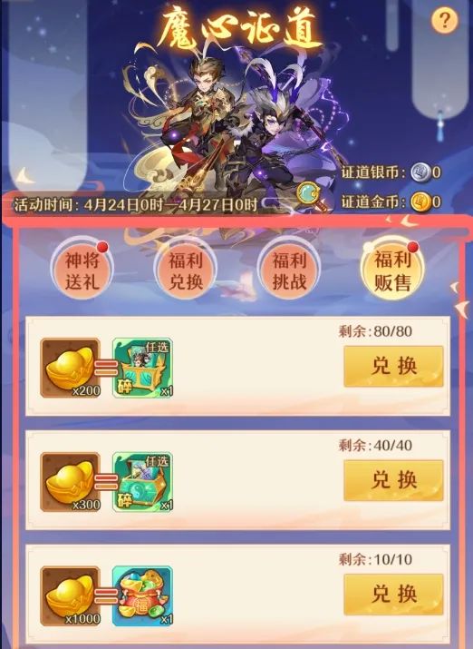 我们可以在节日贩售里面购买80神将碎片和40法宝碎片。