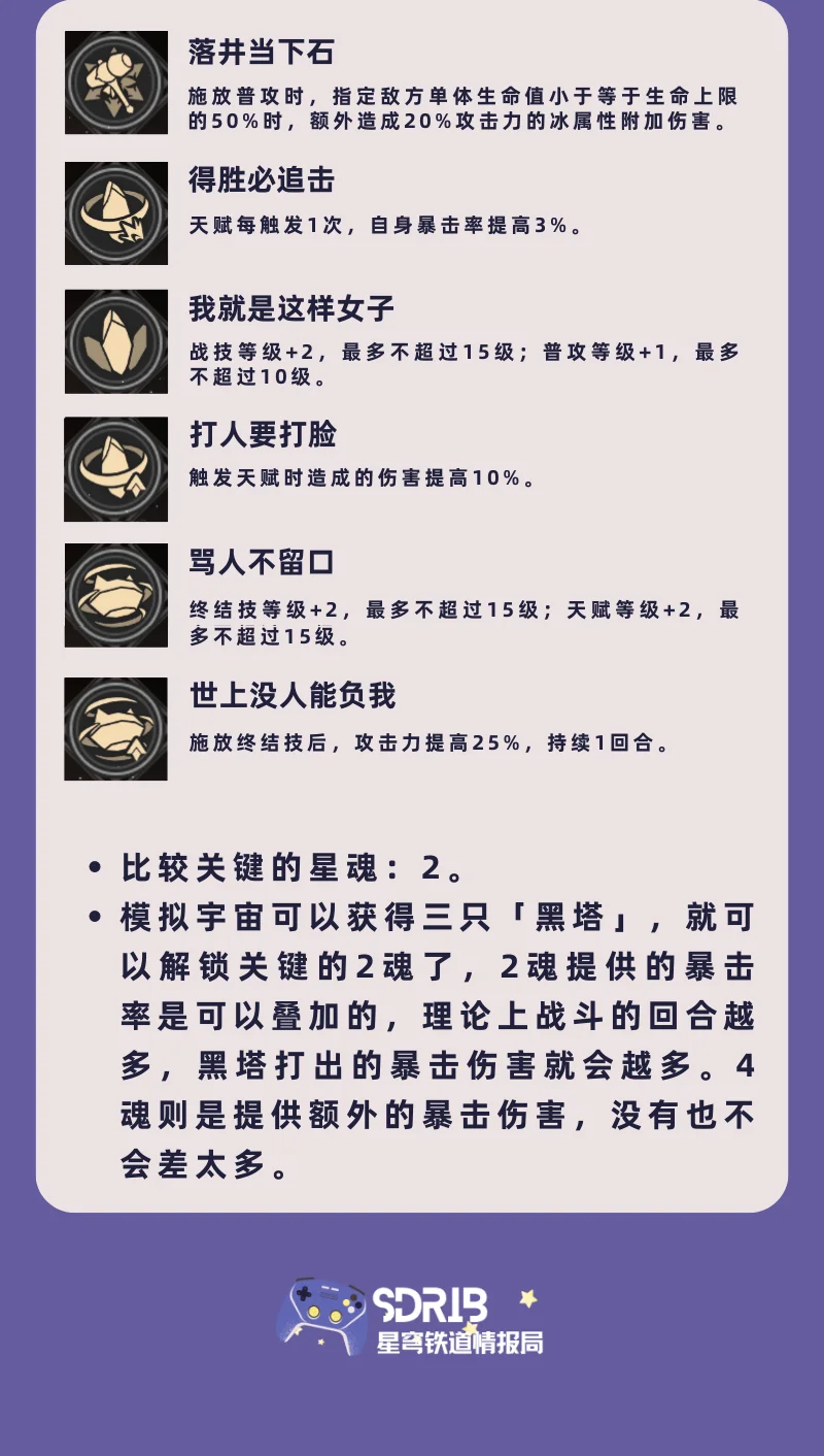 冰属性智识命途,黑塔是游戏前期很不错的开荒群攻主C角色。