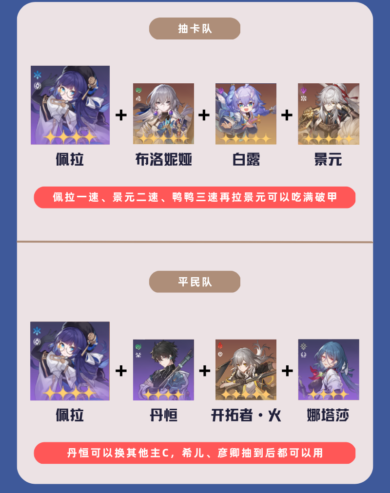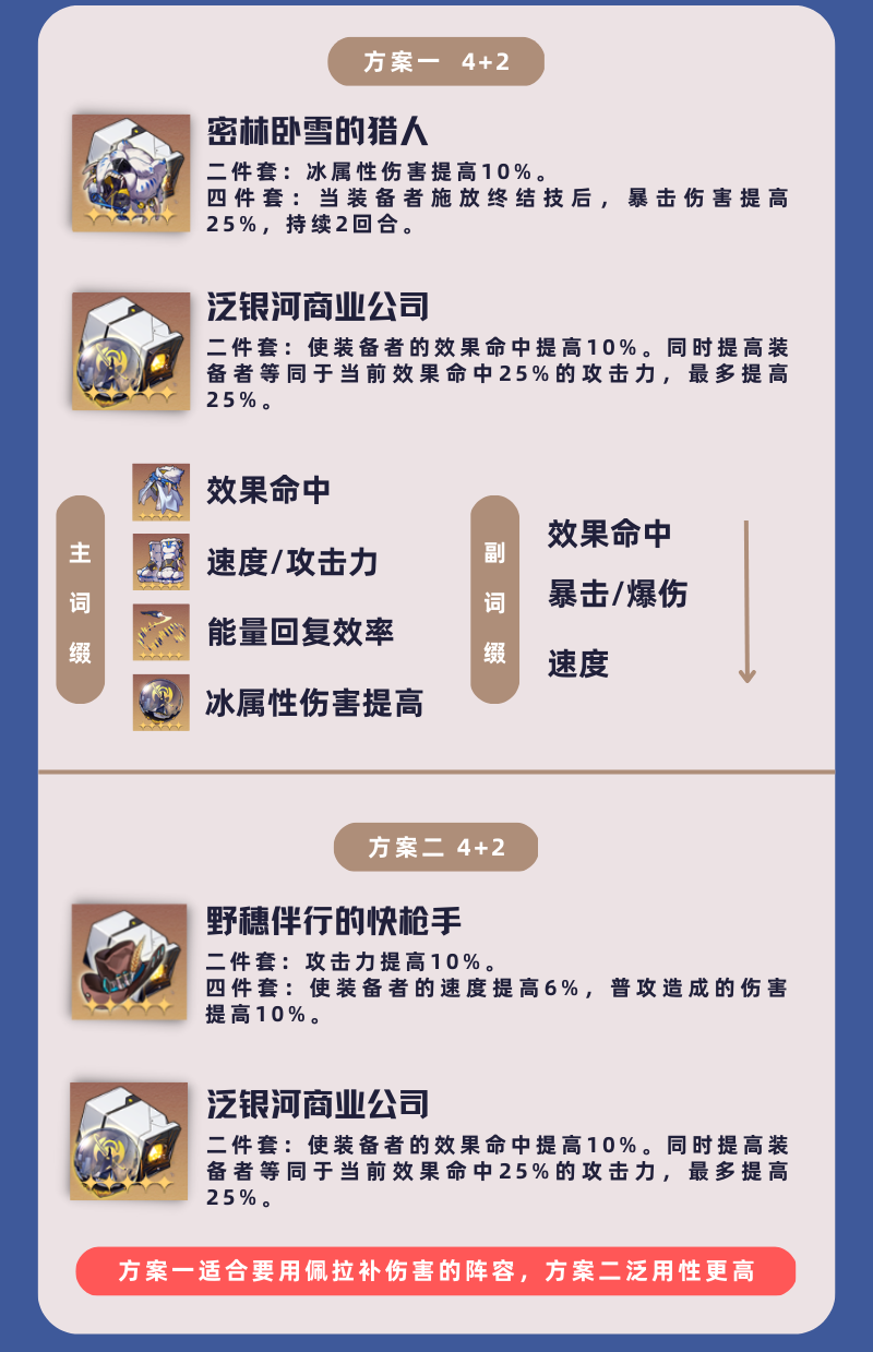 佩拉这个角色需要很高的效果命中,才能稳定的帮助主C创造一个好的输出环境,因此佩拉需要穿速度鞋赶上破甲与驱散时机,前期过渡的遗器会浪费一部分资源去帮助佩拉堆效果命中,会拖慢养成的节奏。