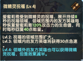 释放祝福领域,领域内的友军每秒恢复生命值和能量,还能提升急速数值。