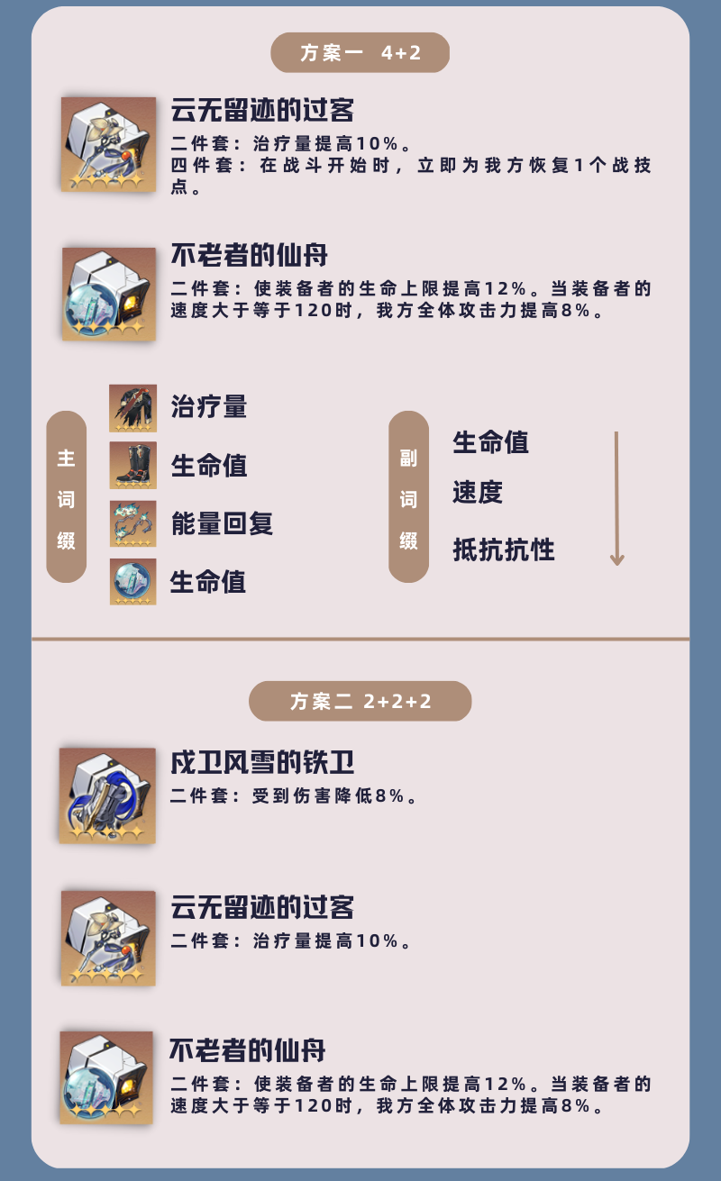 使装备者的能量恢复效率提高8%,并在施放终结技时治疗量提高12%