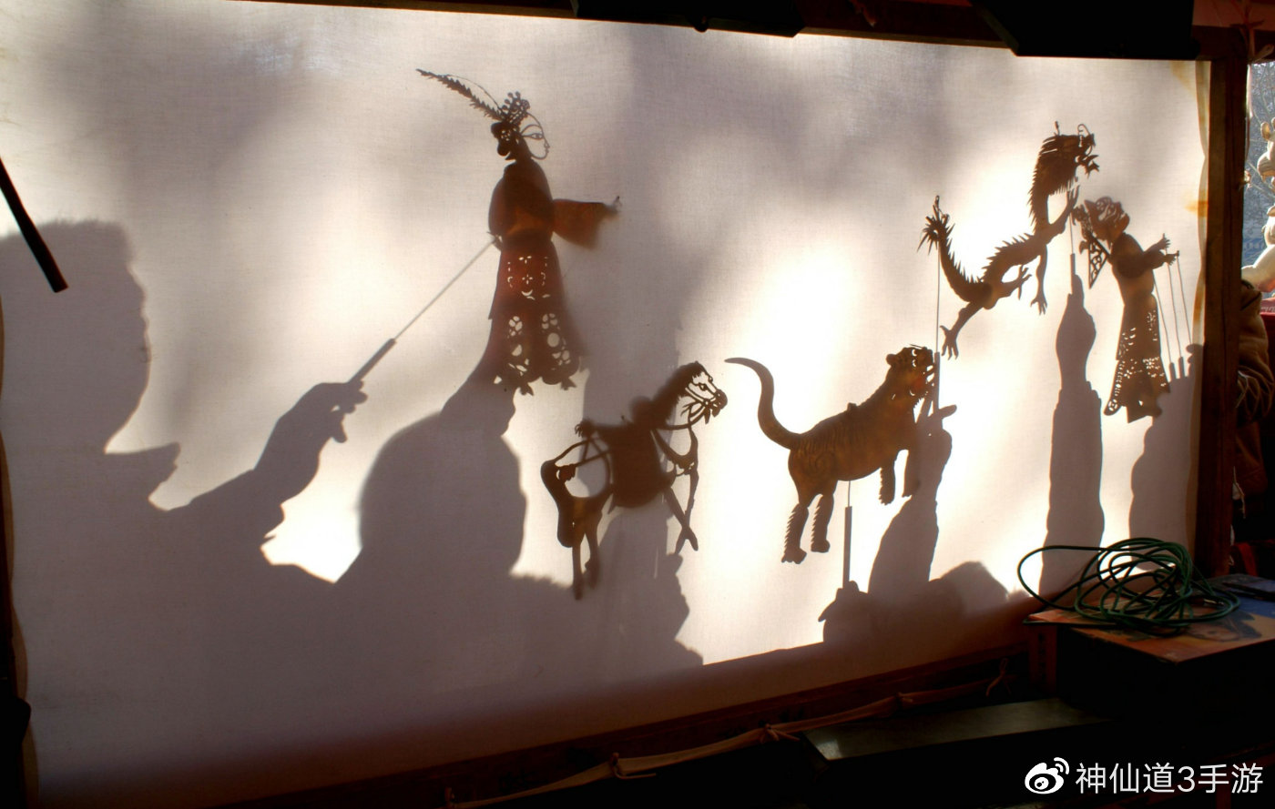 皮影戏,旧称“影子戏”或“灯影戏”,是一种用蜡烛或燃烧的酒精等光源照射兽皮或纸板做成的人物剪影以表演故事的民间戏剧。据史书记载,皮影戏始于西汉,兴于唐朝,盛于清代,可谓历史悠久,源远流长。表演时艺人们在白色幕布后面,一边操纵影人,一边用当地流行的曲调讲述故事,同时配以打击乐器和弦乐,有浓厚的乡土气息。