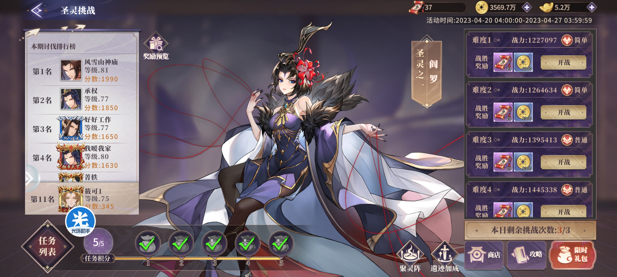 阵容推荐群伤流:昊天大帝+通天教主+青龙+杨戬+半月狐尊