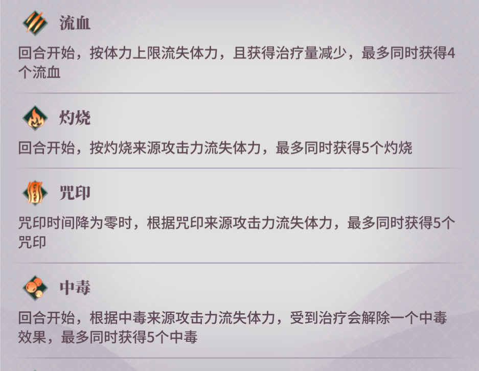 流血中毒和灼烧这三种间接伤害都是在回合开始时发动