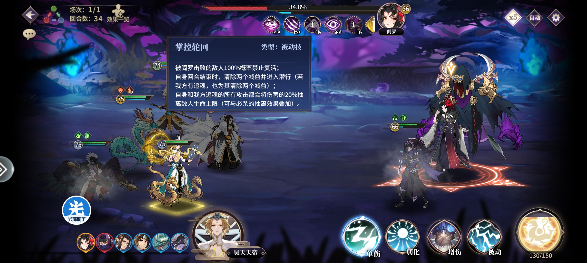 这里优先击杀白泽,其次就是集火攻击阎罗或者是追魂,由于这两个都有潜行效果,如果他们任何一个进入潜行状态,那么我们就要攻击另外一个。