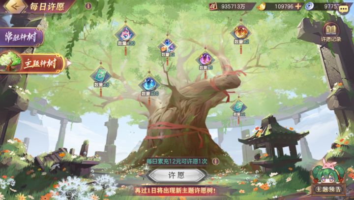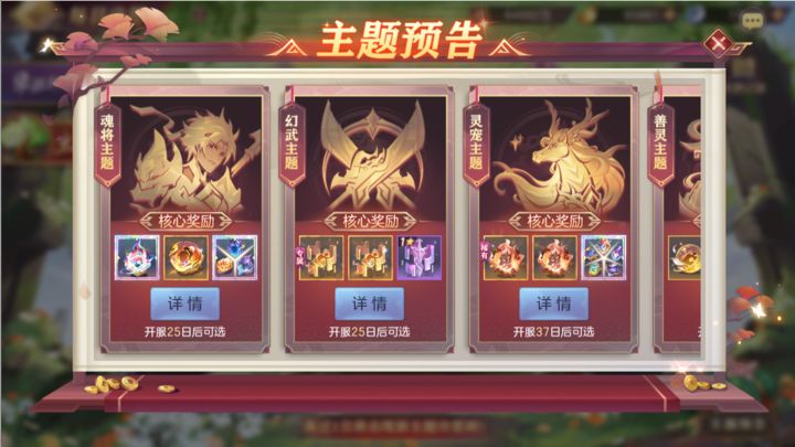 2、主题树重置前,小将军们选择的【主题神树】,在【主题重置】开启后奖励可继续获取;当奖励全部获取后,可选择的主题将变更为全新的5大主题神树,可选次数此时自动重置。