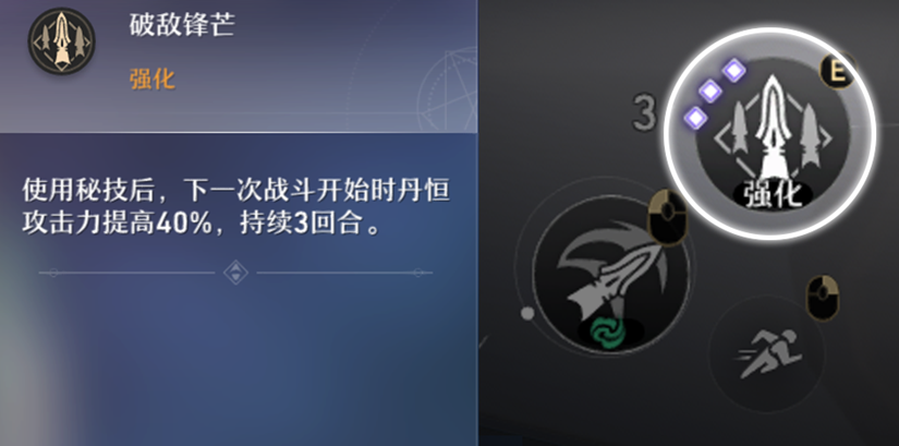 ▲丹恒的【秘技】,技能标签为强化,在索敌阶段使用不会立即攻击