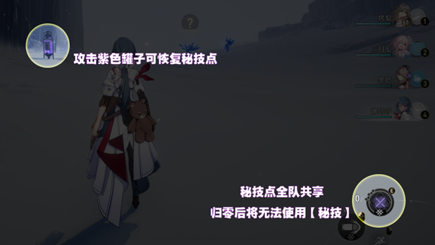 2、每次使用【秘技】都会消耗秘技点,可以在地图中寻找紫罐补充秘技点;