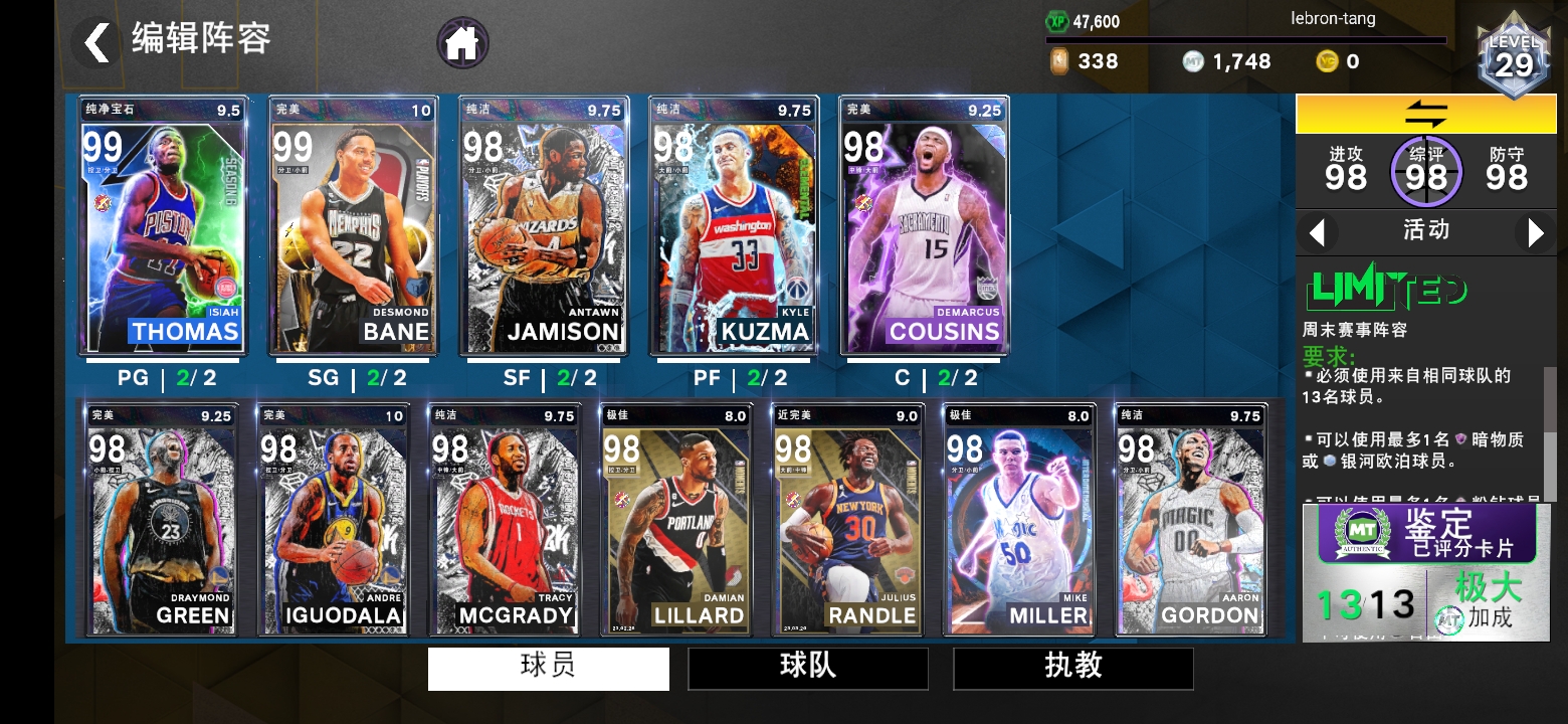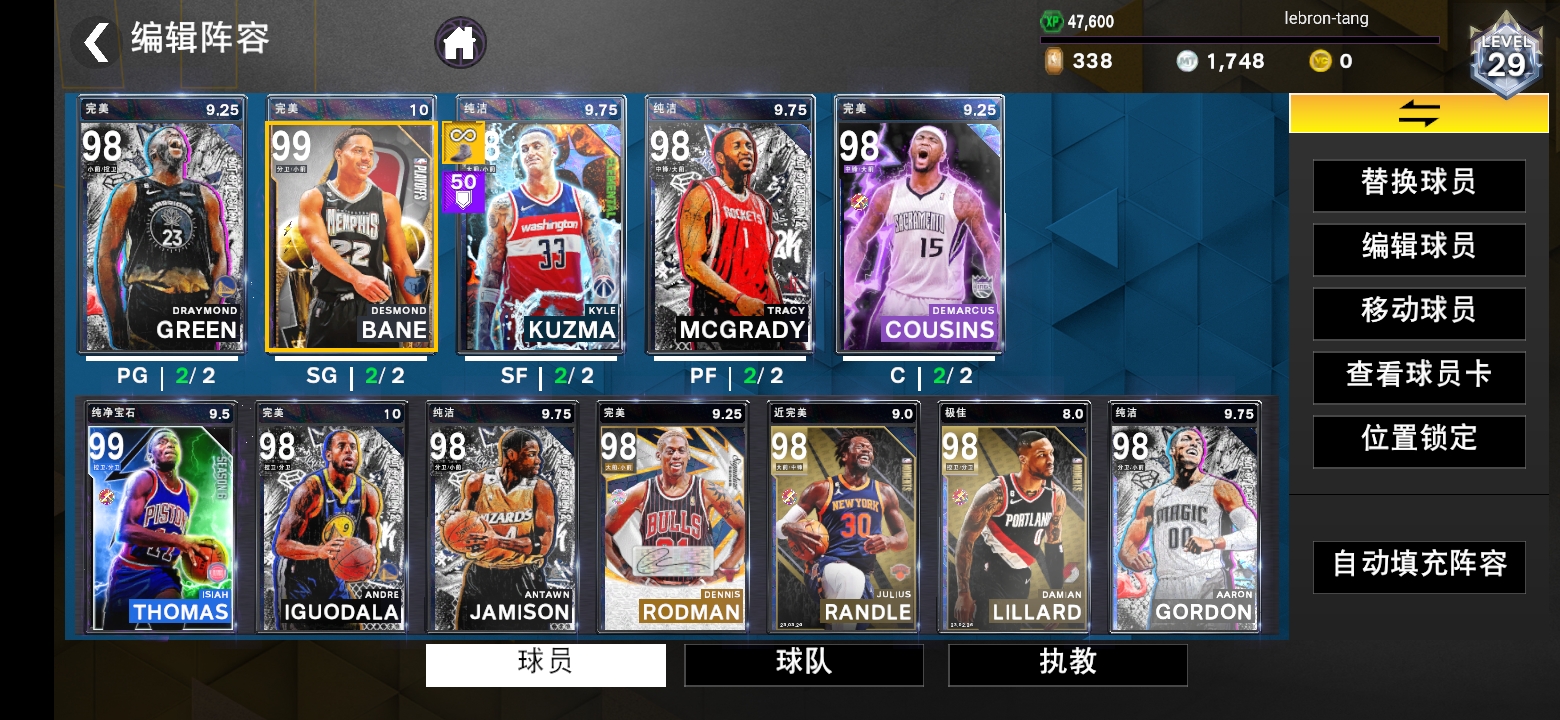 这托马斯+贝恩打线下都费劲啊 一哥/格林+贾米森/戈登+裤子这是一二三号位 贝恩和麦迪卖了吧,现在加起来能卖差不多十万,搞英雄班巴,英雄老萨,古德蒙森三选二上四五号位,如果有剩余就搞个普通特工或者本德尔补一三号位,当然四号位最好的选择赛季大奖大梦,抓紧肝到40级吧