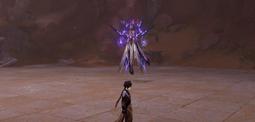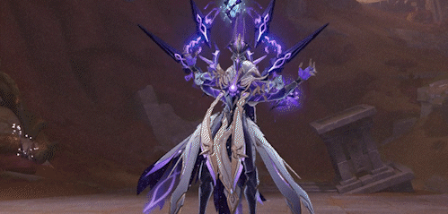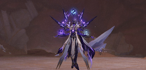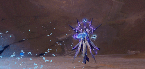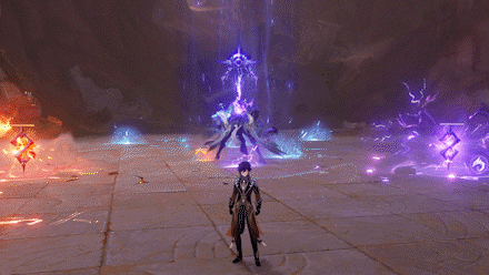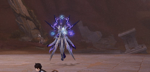 深罪浸礼者脱去身上的盾,双手各捧一个从核心上获取的元素精华,并在前方产生元素球,左侧元素为将换下的元素,右侧元素为即将换上的元素,片刻后,元素球爆炸完成换盾流程。