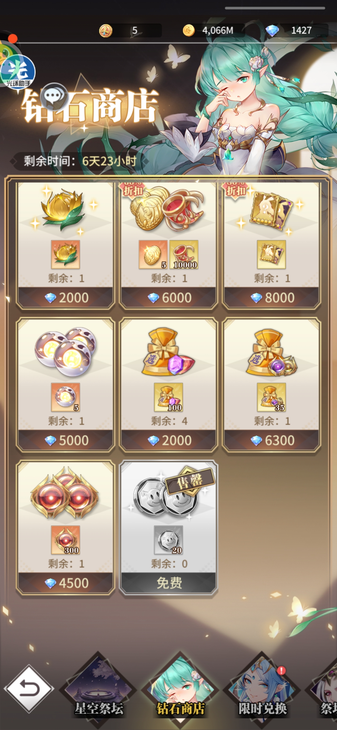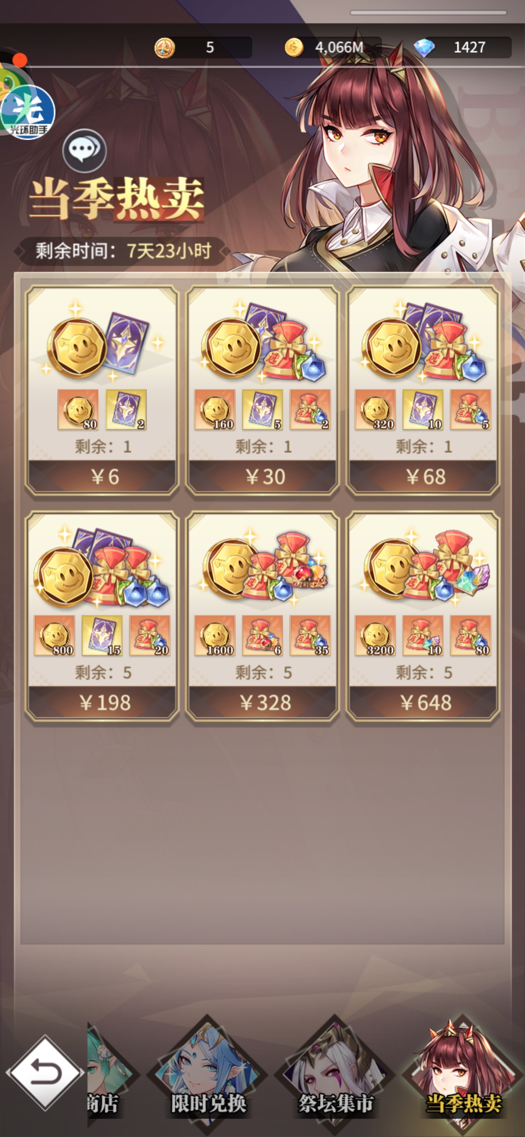钻石商店,优先购买上品神灵、祈祷币、魂导器,钻石多的可以考虑买中品神灵、极限突破石、神器印记,千仞雪/千寻疾。