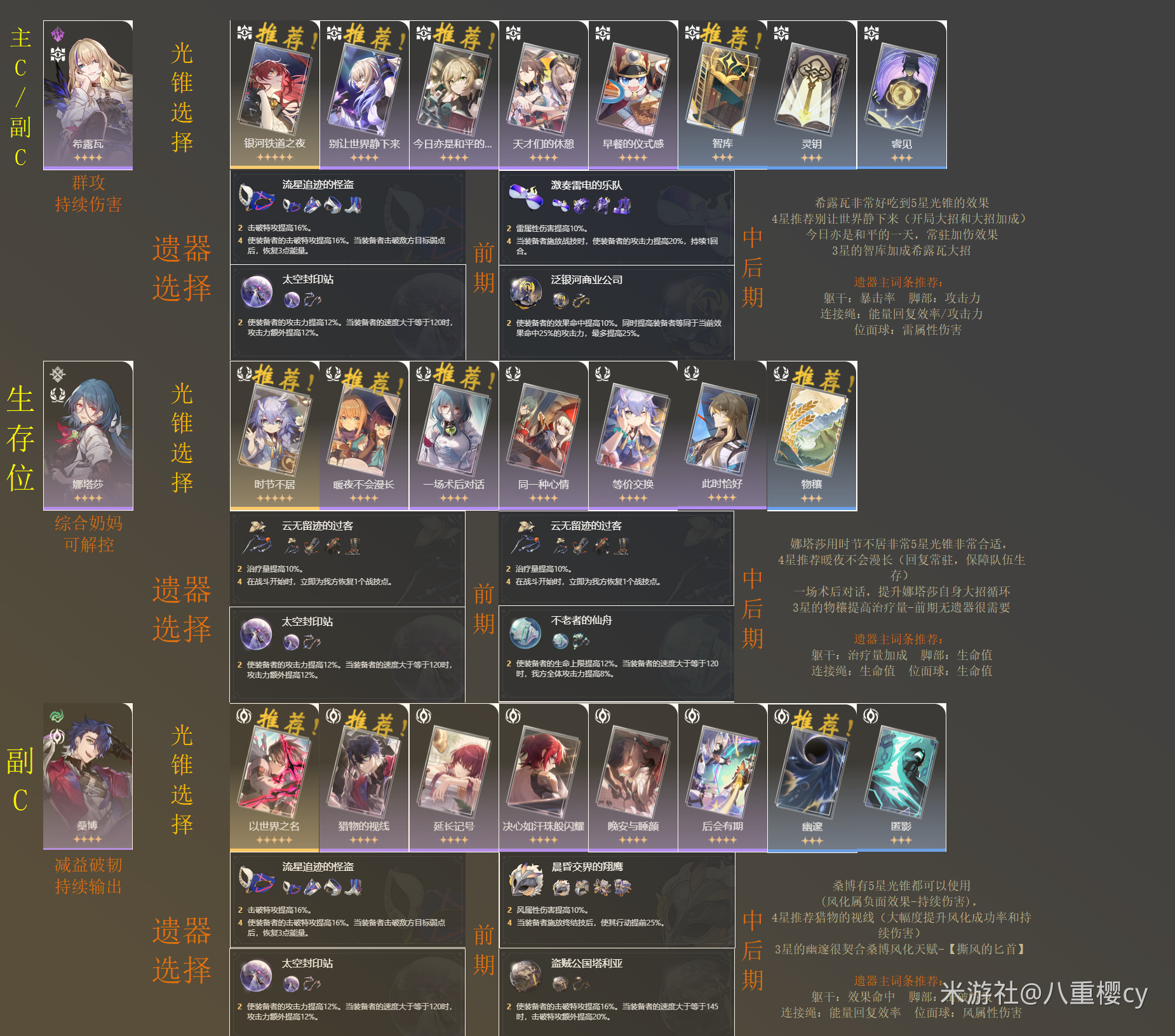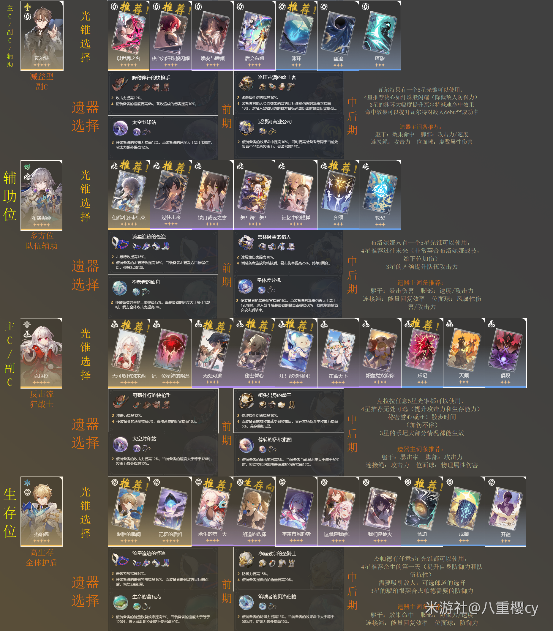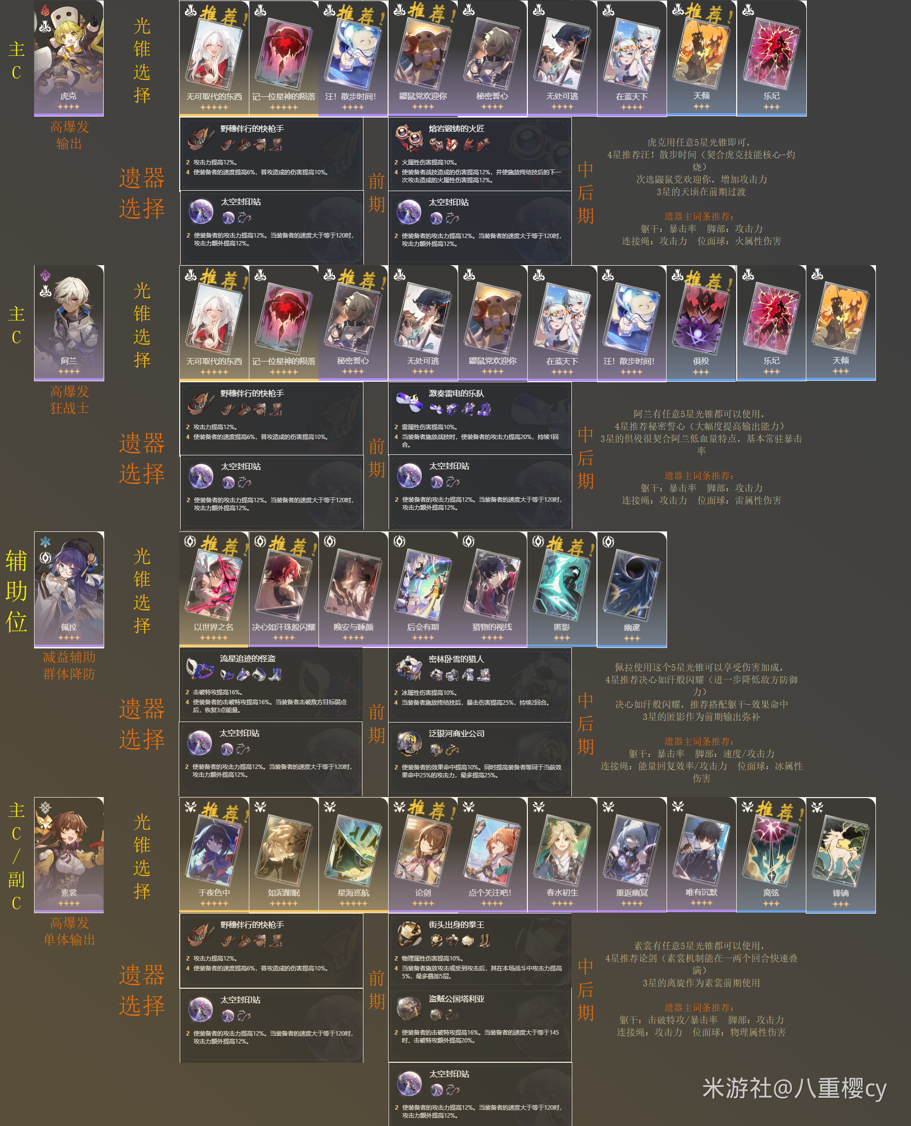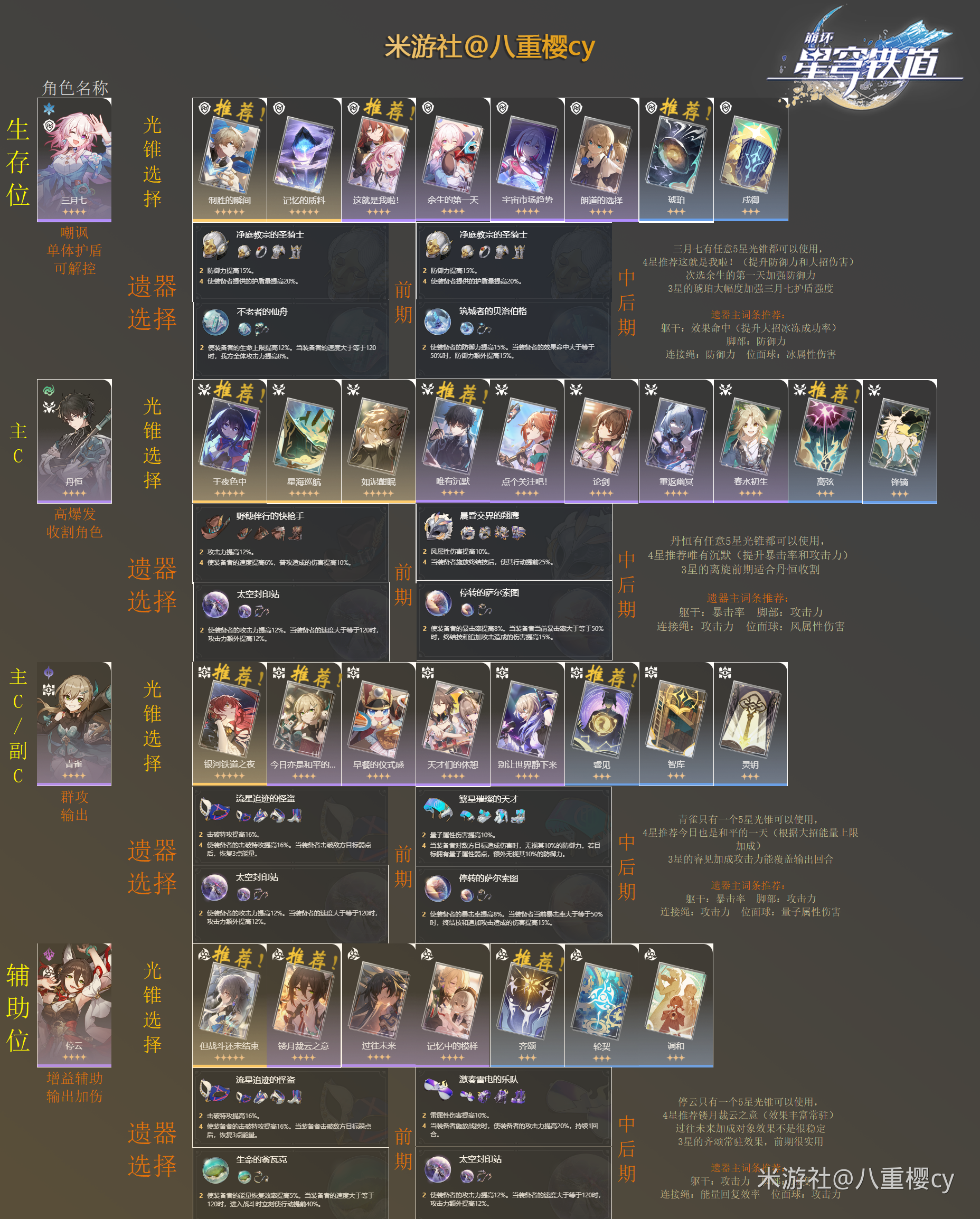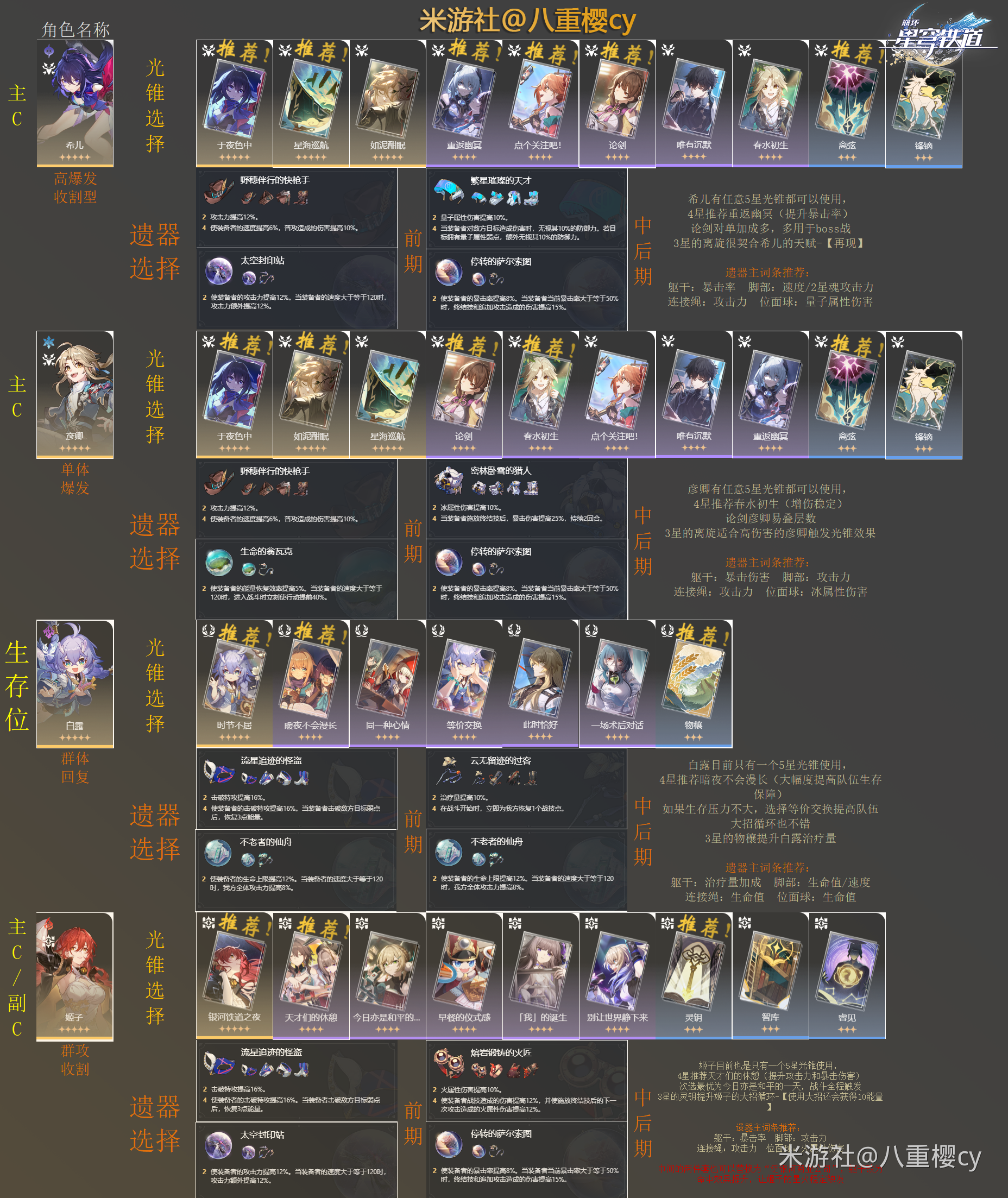 根据不同角色的自身特点,通过光锥、遗器、配队往往能出现出人意料的效果,这一点大家可以多多尝试。