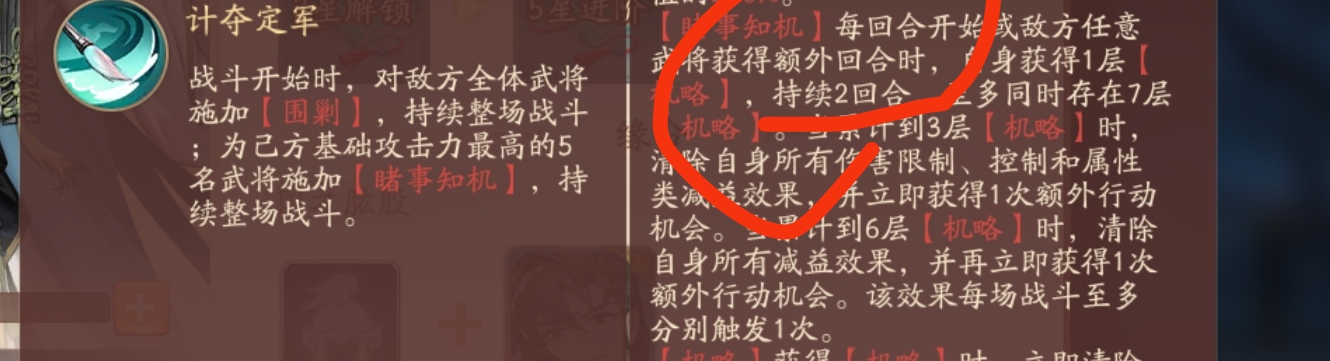 先看法正五星兵书这里,可以理解为如果你的对手有这本战法,就会多几个额外回合,你有五星法正,那么你的法正的机略会攒的更快,文丑星宫也有一个开局获得额外回合。而额外行动并不会影响法正攒机略的速度。