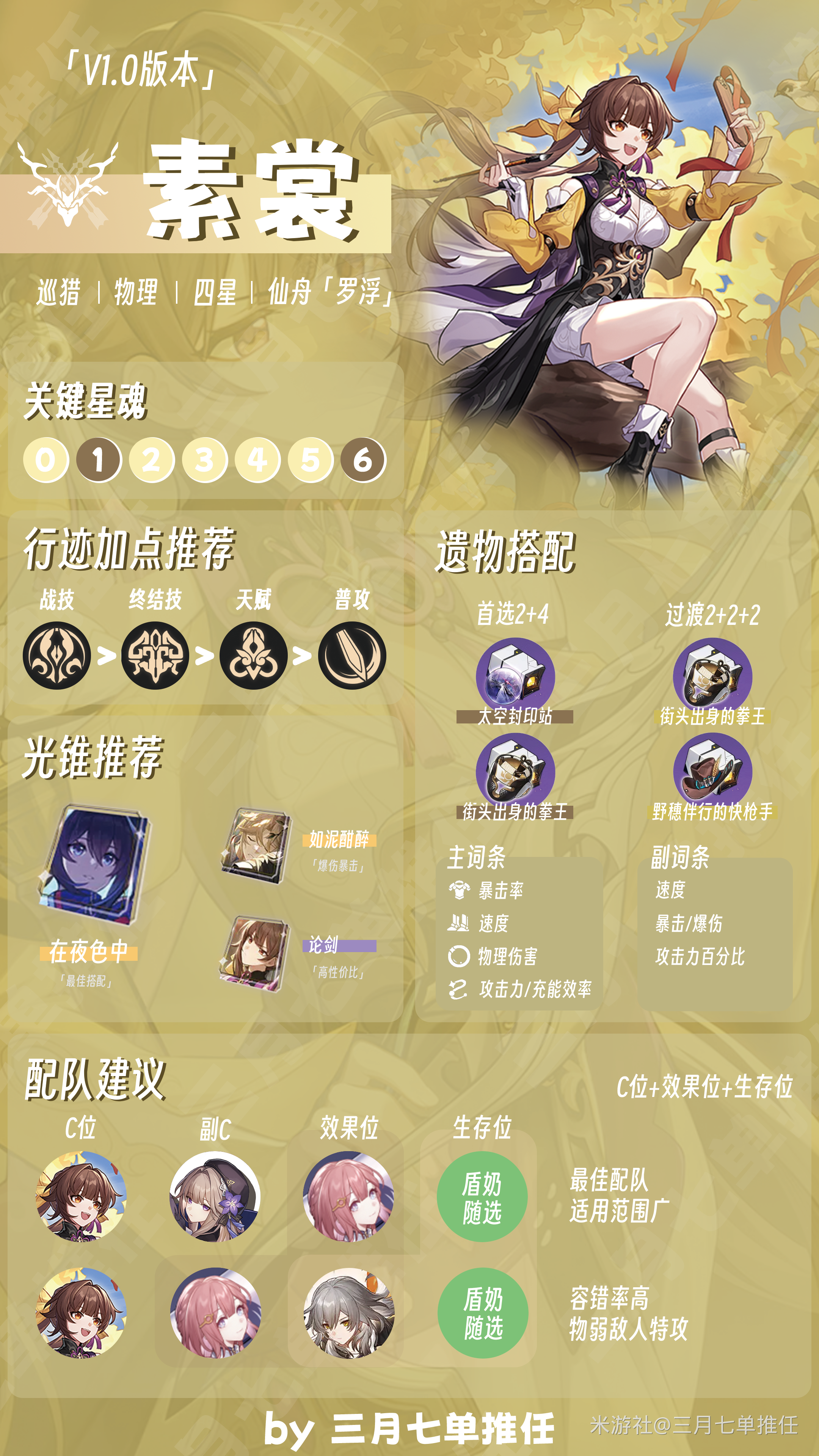 【巡猎】命途,四星【物理】属性输出角色,关键星魂【1、6】
