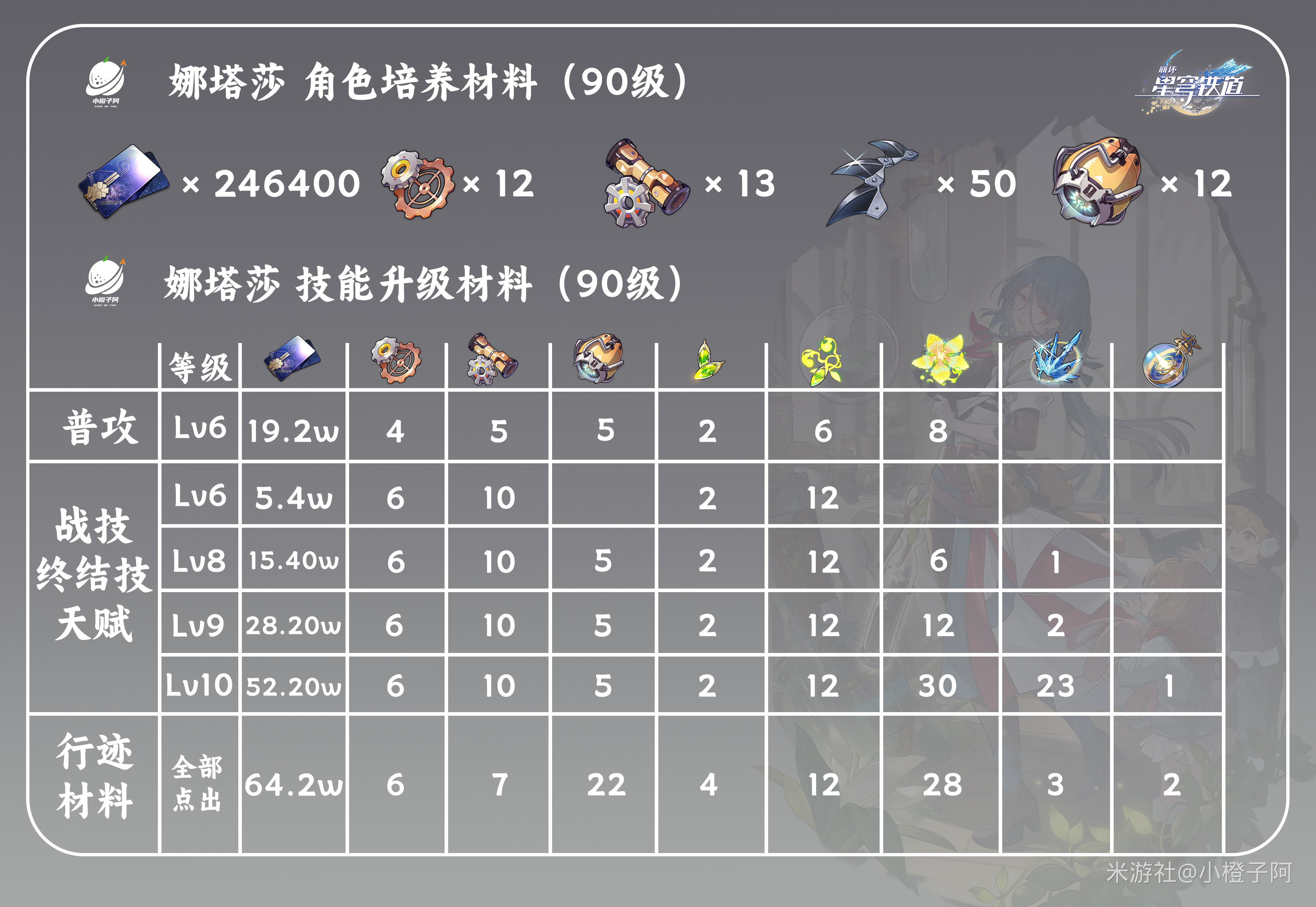 我们事不宜迟,赶快进入「娜塔莎」角色攻略分析,老规矩,这里小橙子还是准备了两份,一份简易长图(附材料表),另一份就是超详细千字攻略,小伙伴们根据自己时间自行安排。