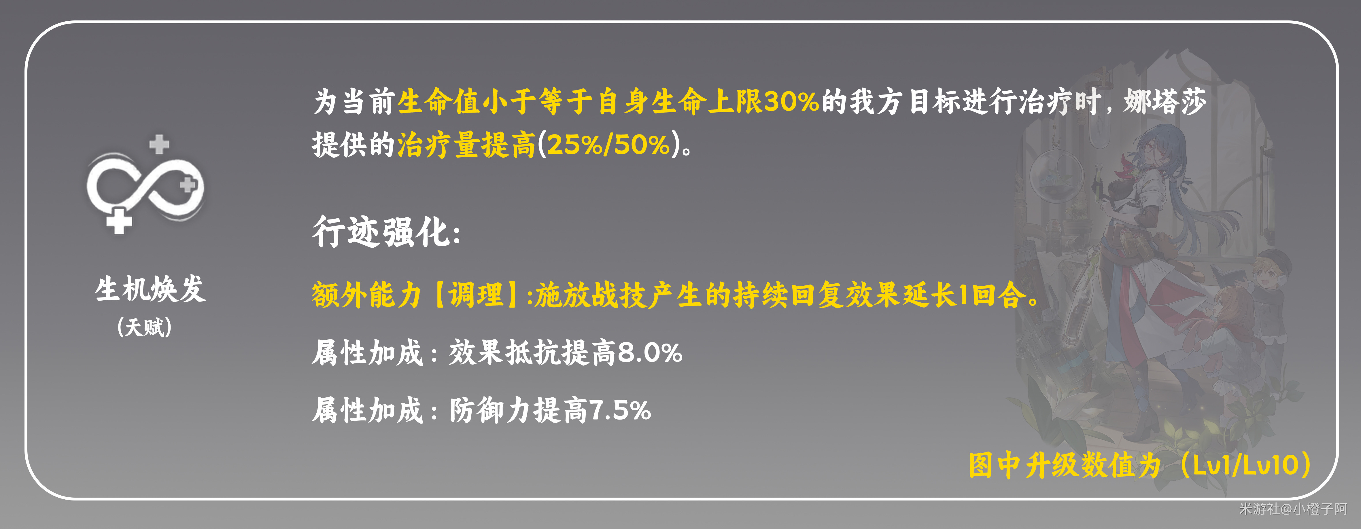 ② 额外能力【调理】将战技持续恢复延长到3回合,增加队伍的容错率。