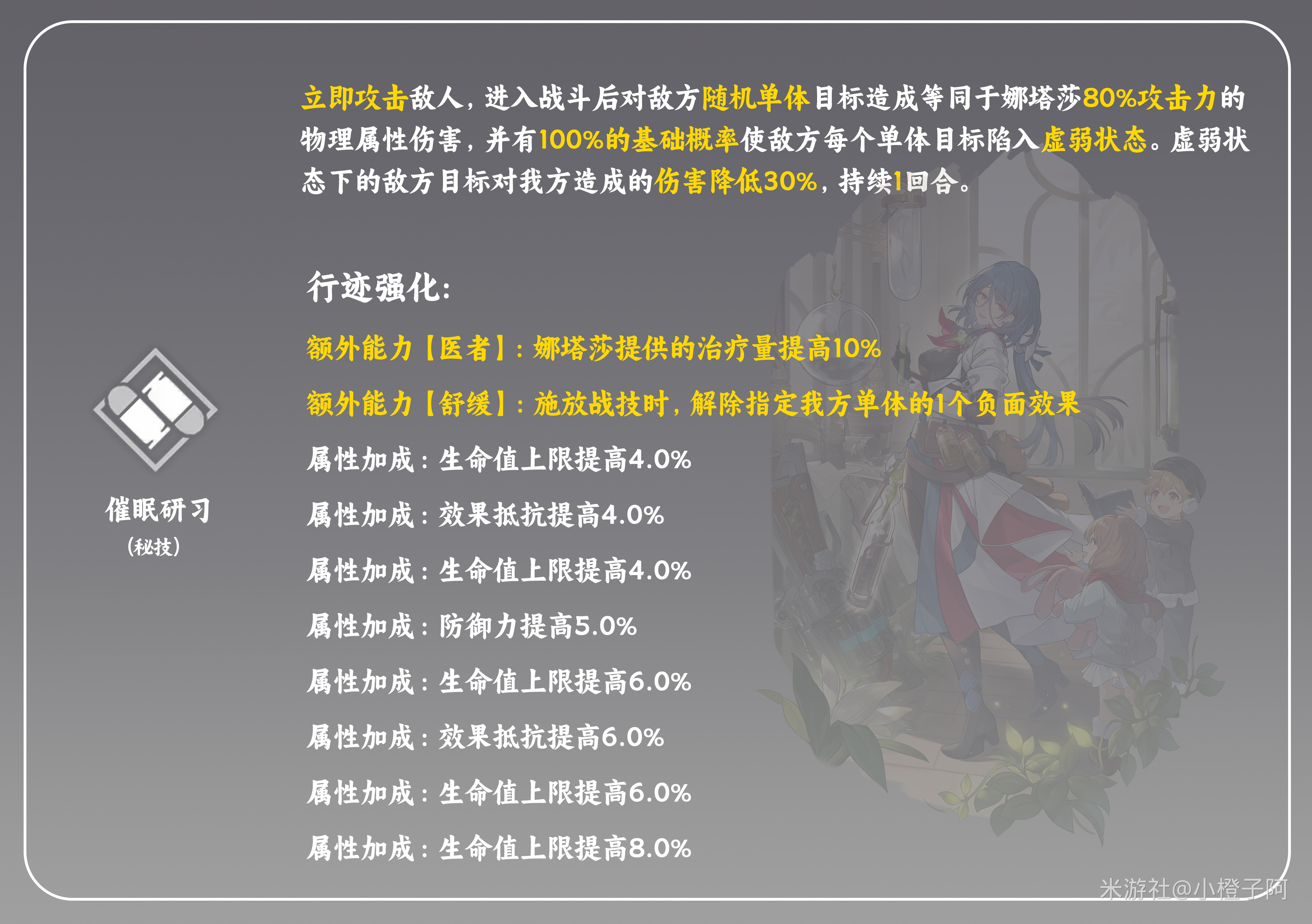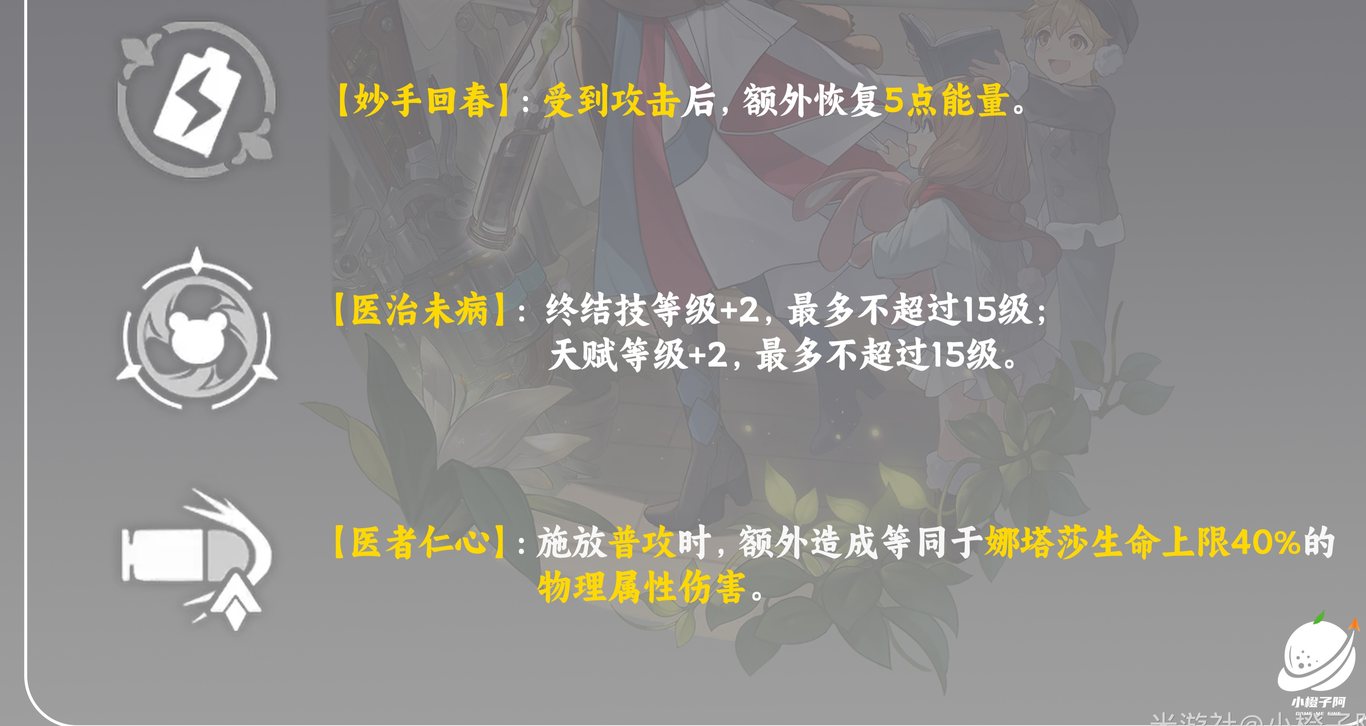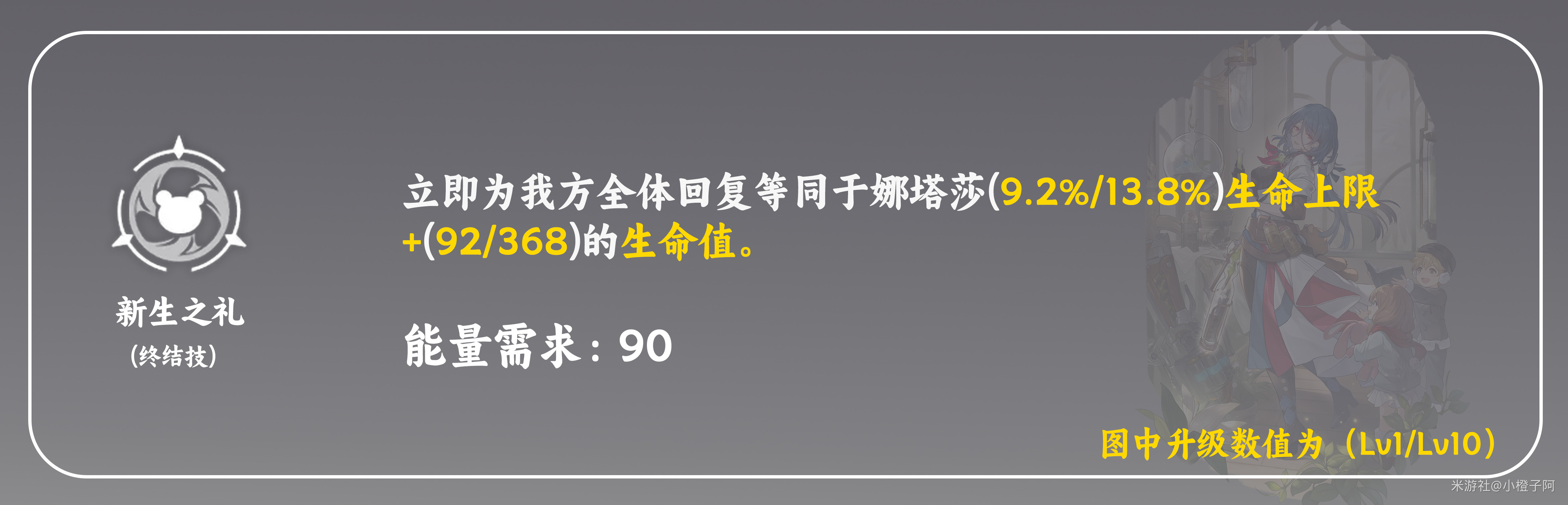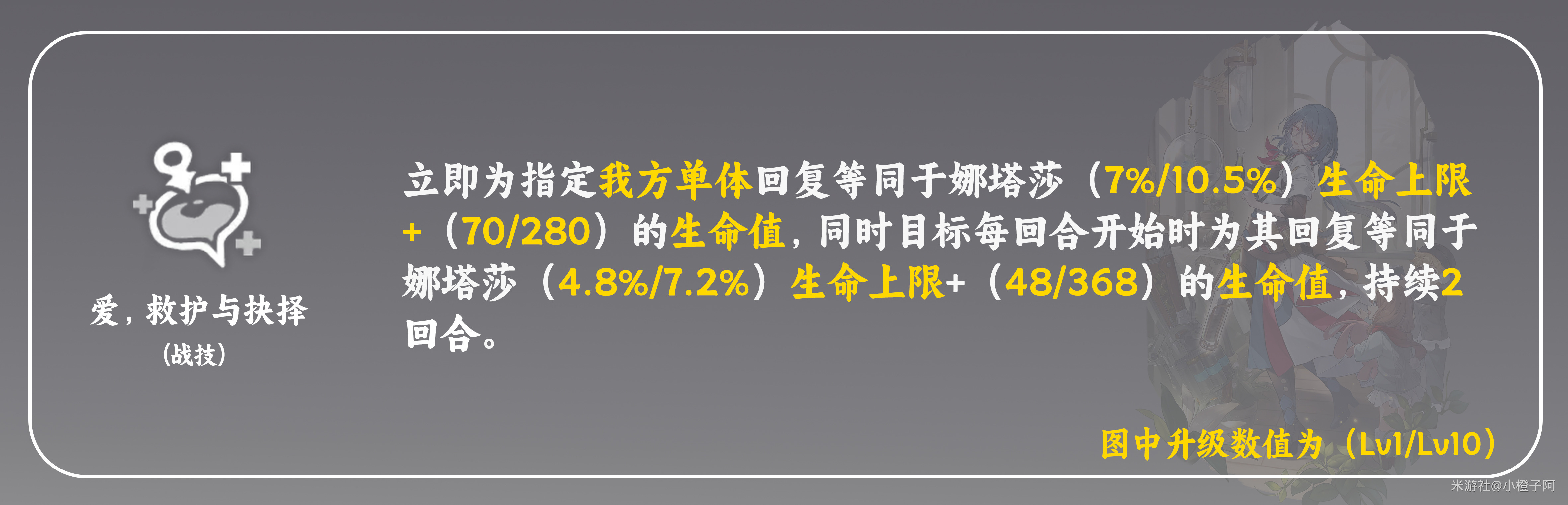 稳定提高生命值与治疗量,两者均可增加「娜塔莎」的奶量。