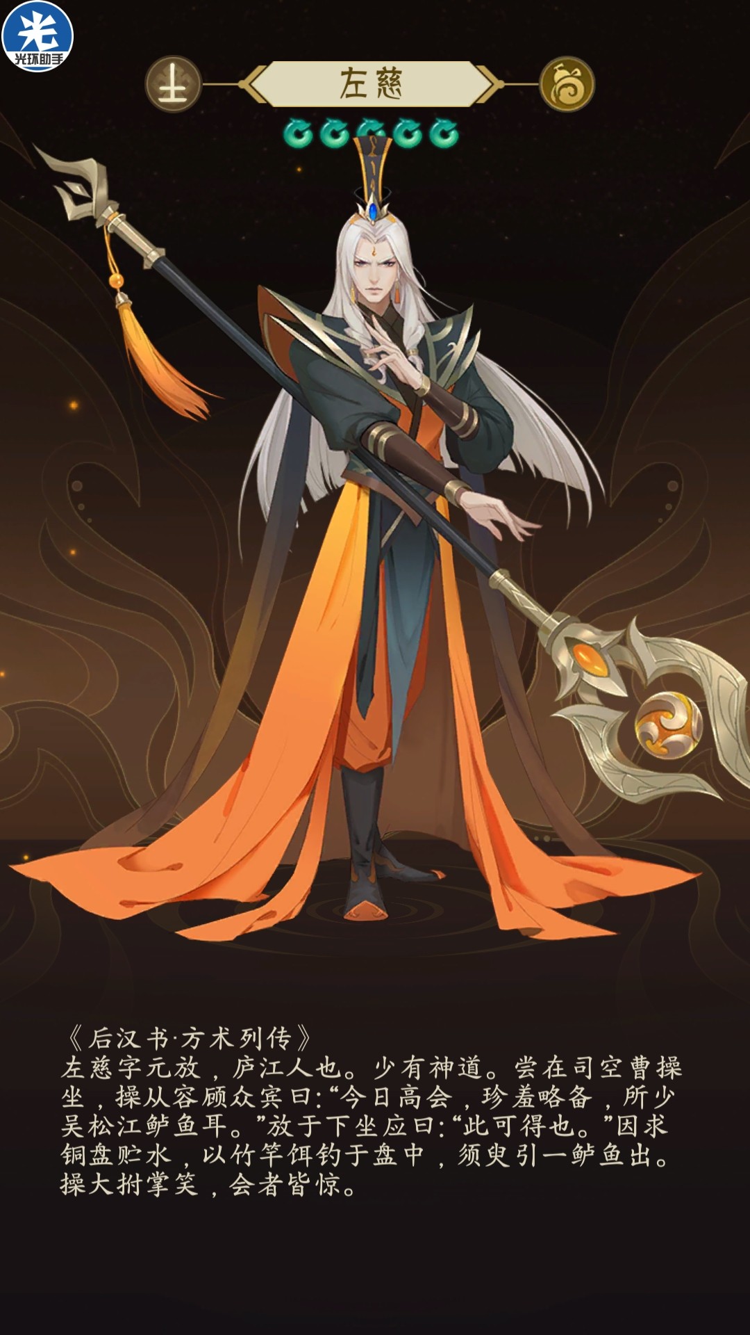 左慈为人广施薄取,心里所想也难以令人琢磨。不刺探那些心智高远的人内心所想,大概是他内心也能够感知这些人的内心吧。如果是遇上那些人生失意的人,他也能使他们明白个中玄妙,使他们的人性变得乖张。正如他在游戏中的台词一样:“云游四方,逍遥自在!”