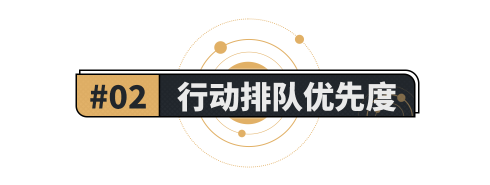 战斗开始后,根据速度计算角色行动值,当行动值归零后,行动值=0的角色会依以下规则排队: