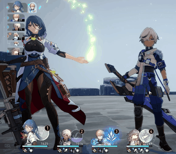 比较具有代表性的角色就是希儿,可以通过击杀敌人获得【额外回合】。例如剩余1回合攻击加成,此时希儿处于【输入区】,可以用【终结技】先击杀敌人,获得【额外回合】,利用【额外回合】再次进行输出,此时角色的常规行动仍然在【输入区】内,没有进入过【结束区】,因此增益BUFF还没有被结算,此时如果再次击杀敌人获得【额外回合】是仍然能够享受增益的,这样仅仅剩余1回合的BUFF,就可以加成1次【终结技】、两次【额外回合】,1次常规行动,合计4次输出操作,极大提升了BUFF的利用率。