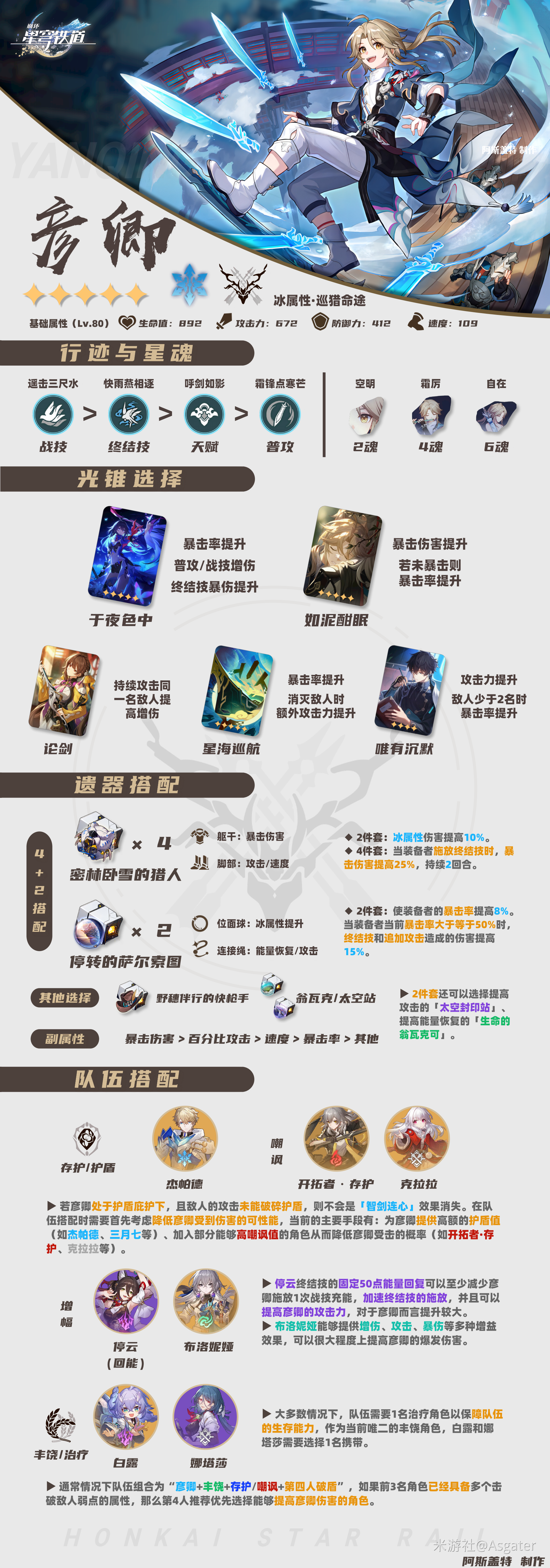 本期将讲解彦卿的技能机制、光锥和遗器的选择、星魂提升以及彦卿的队伍角色搭配~