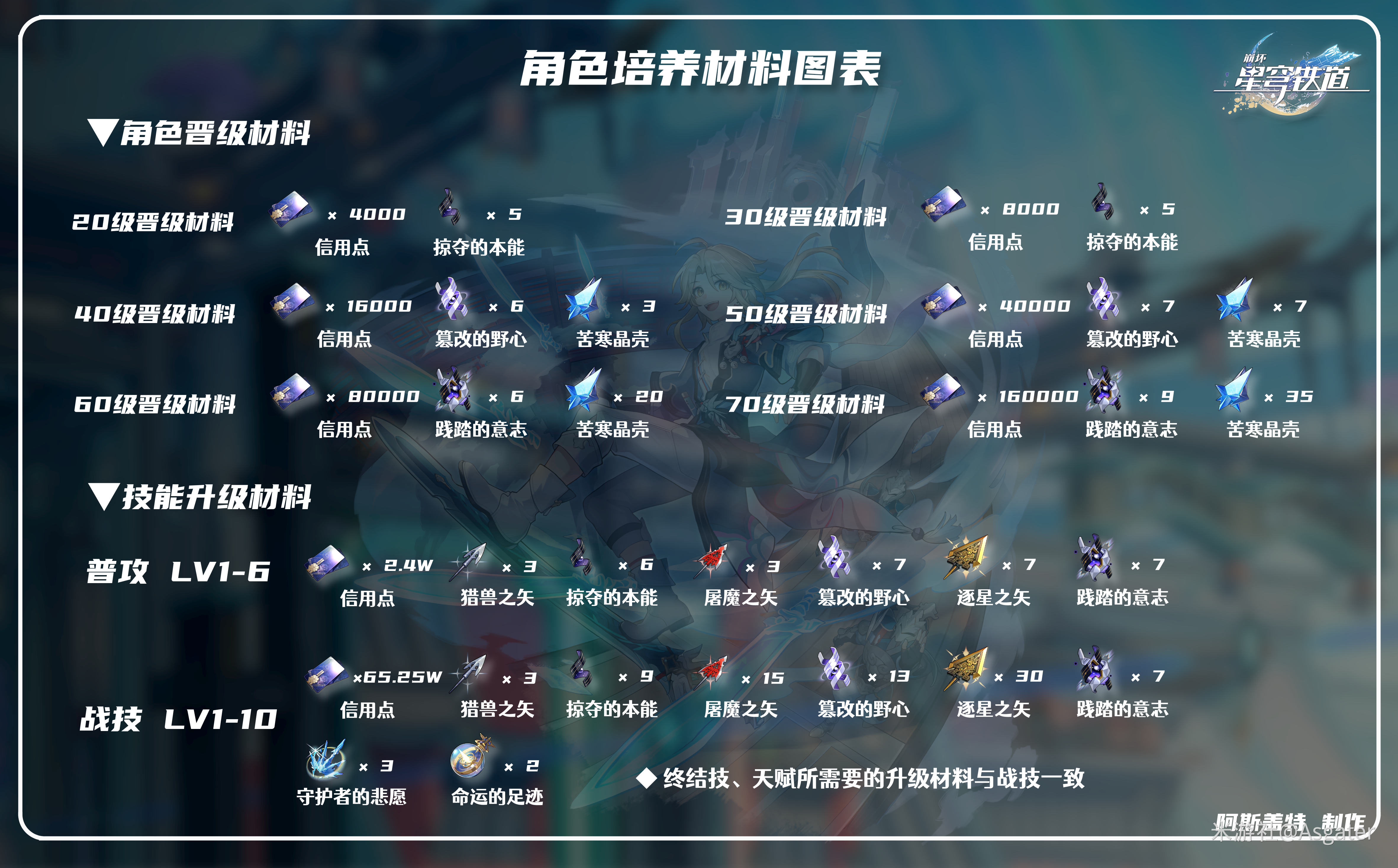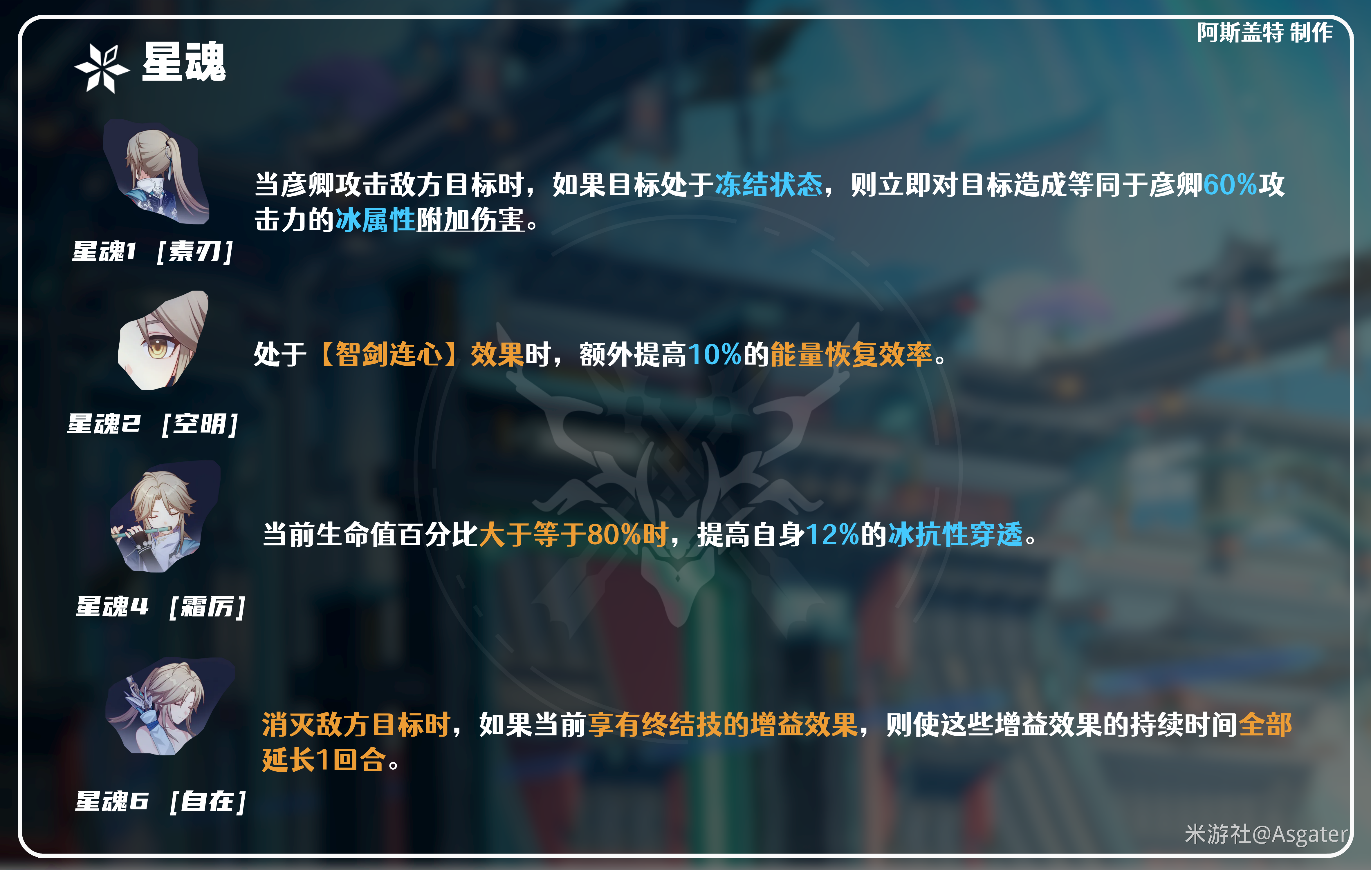 【注】星魂3为战技等级+2、普攻等级+1;星魂5为终结技等级+2、天赋等级+2。