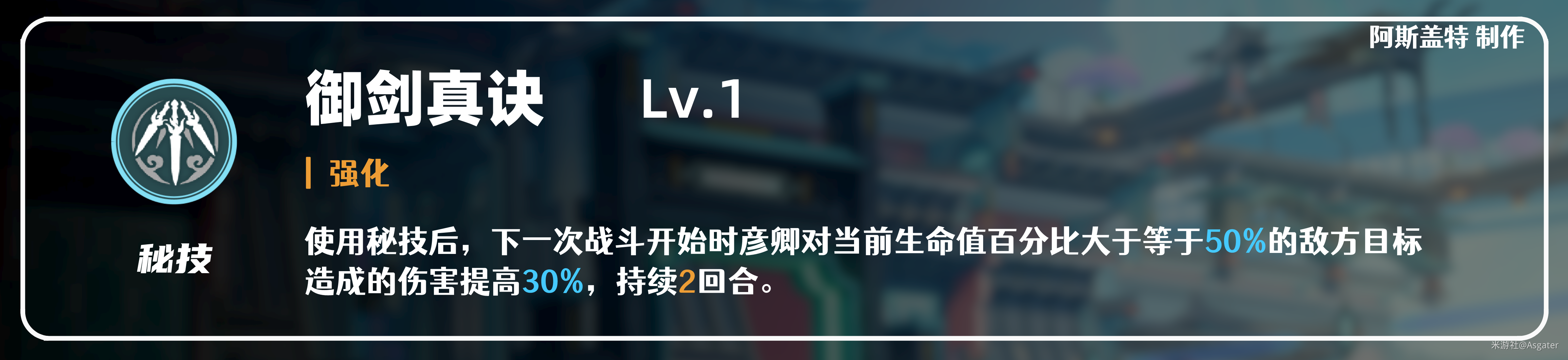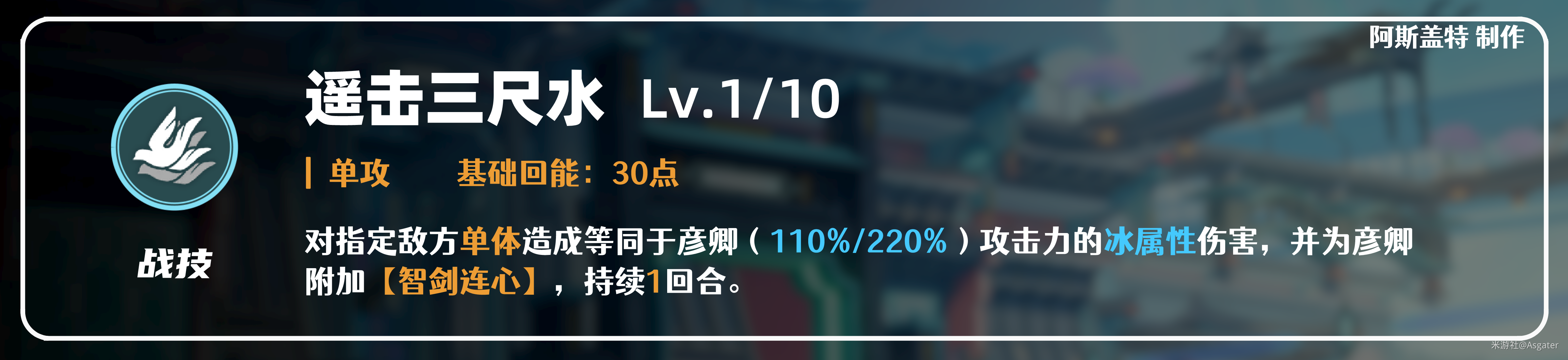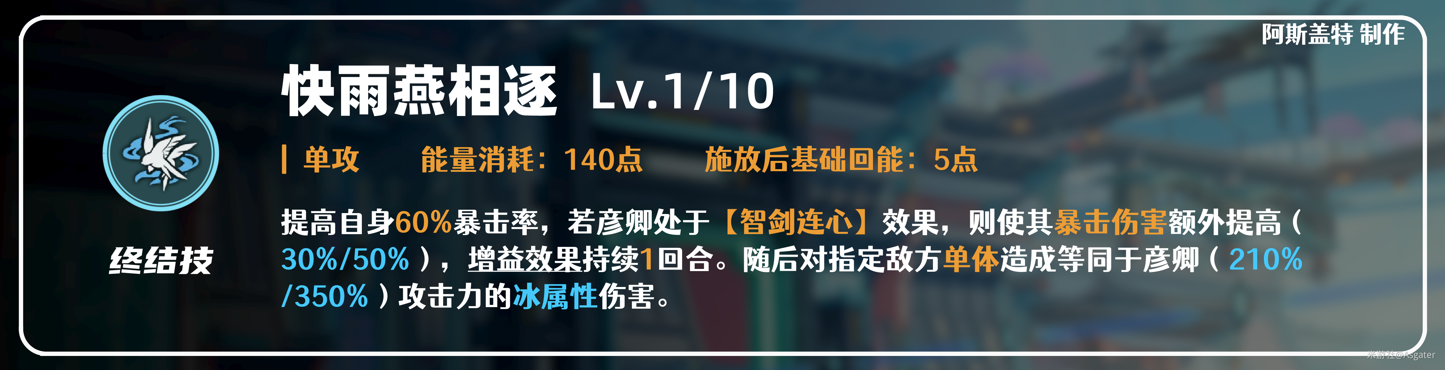 ②.该技能是彦卿的主要输出手段之一,施放战技所获得的【智剑连心】效果可提供额外暴击率、暴击伤害,降低了彦卿遗器选择的暴击率词条分配压力。