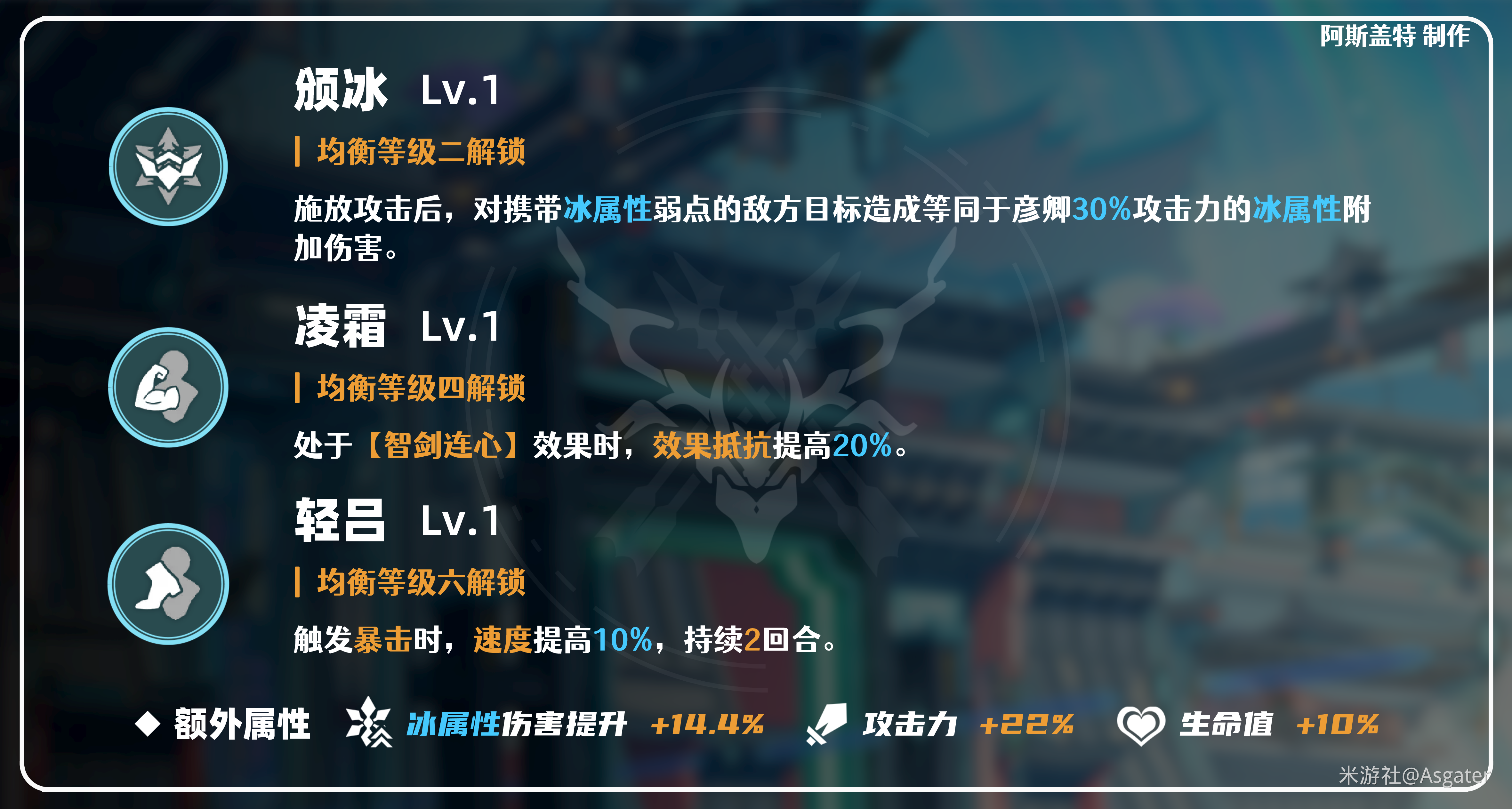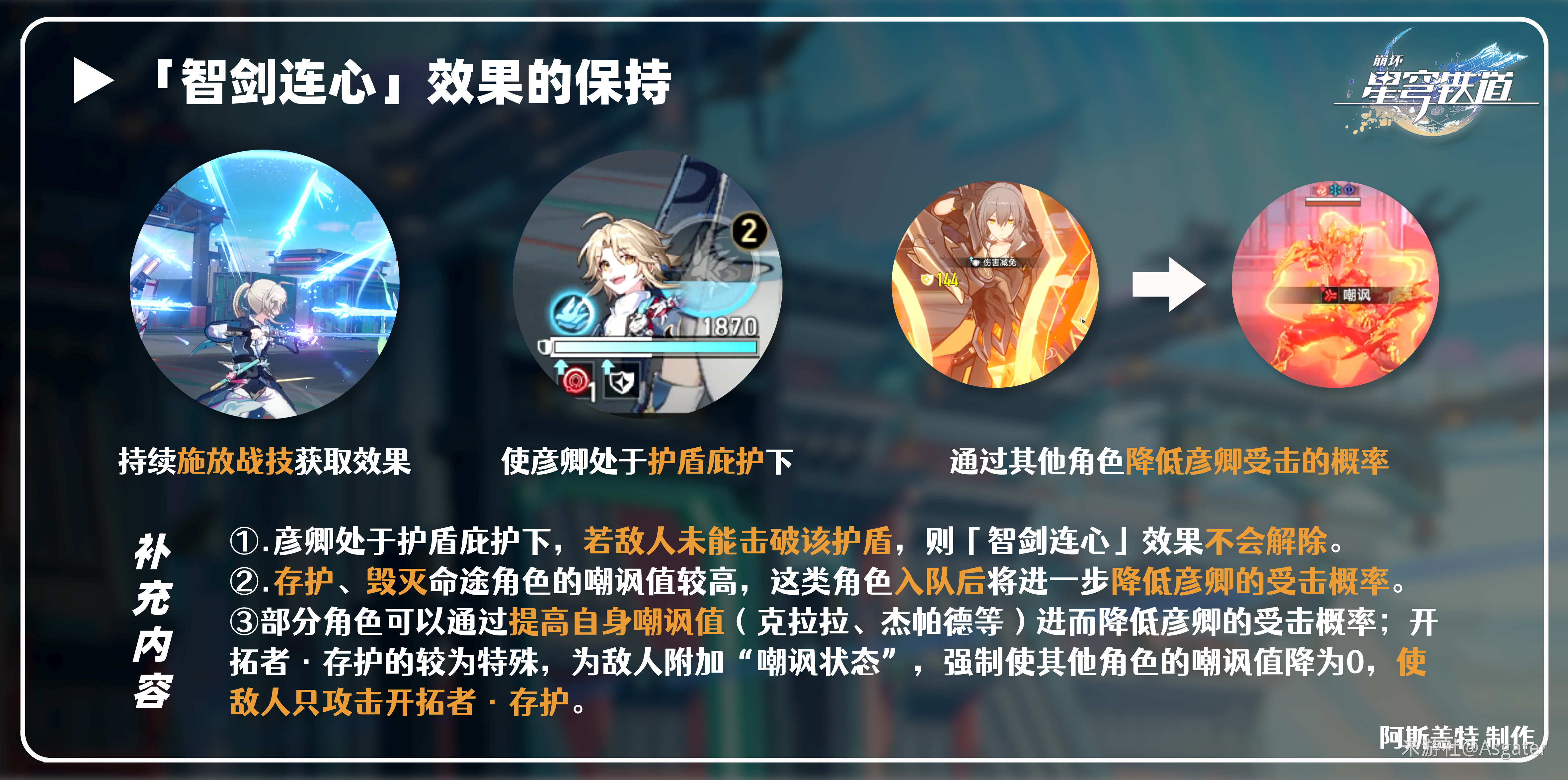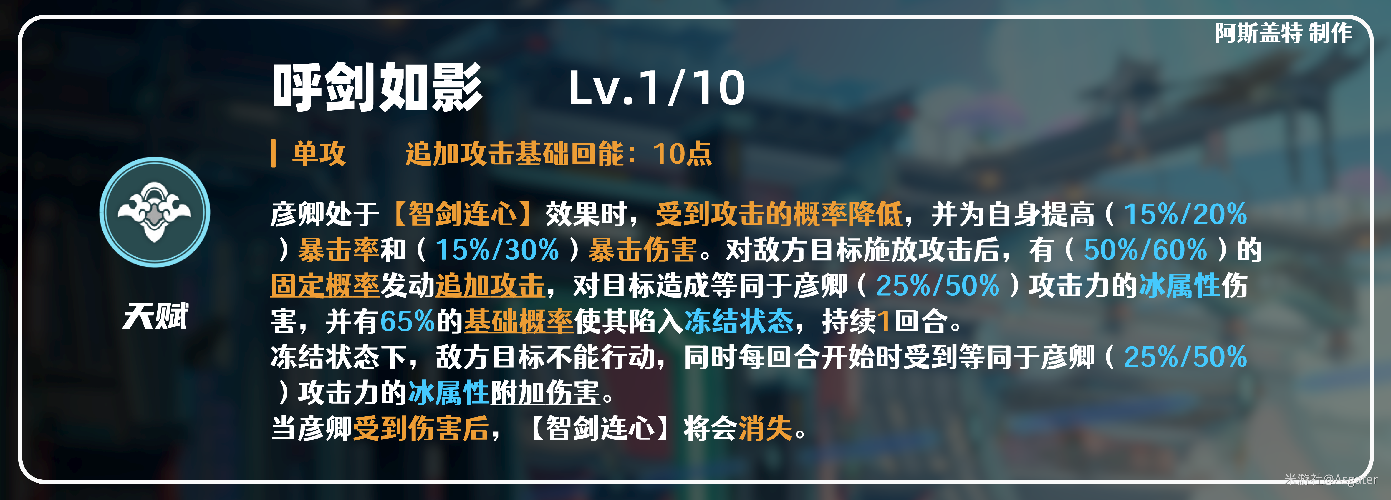 ②.该技能是彦卿的主要输出手段之一,施放战技所获得的【智剑连心】效果可提供额外暴击率、暴击伤害,降低了彦卿遗器选择的暴击率词条分配压力。