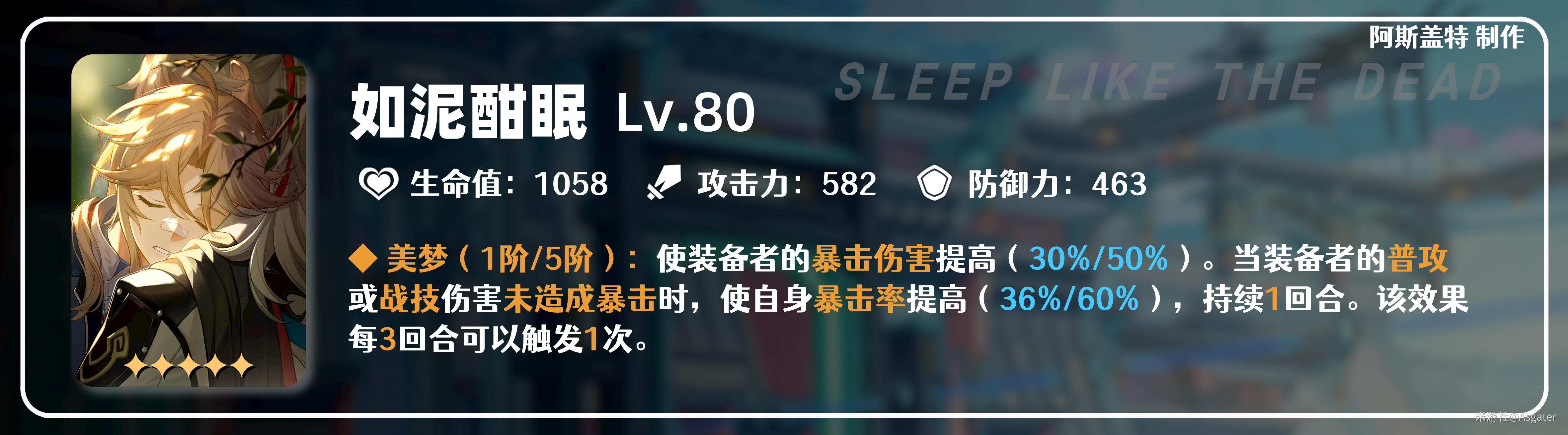 ◆有效副属性:暴击伤害≥百分比攻击力>速度>暴击率>其他
