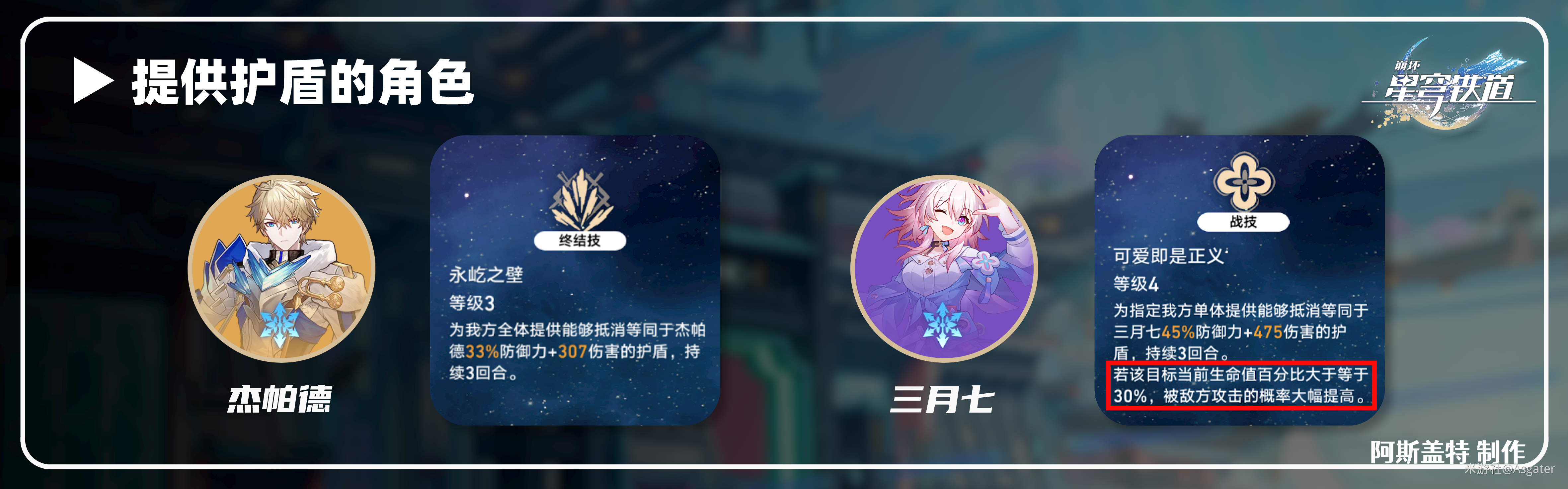 ③.开拓者·存护虽然也可提供护盾,但其提供的护盾量较低,其更核心的机制在于战技的嘲讽效果。