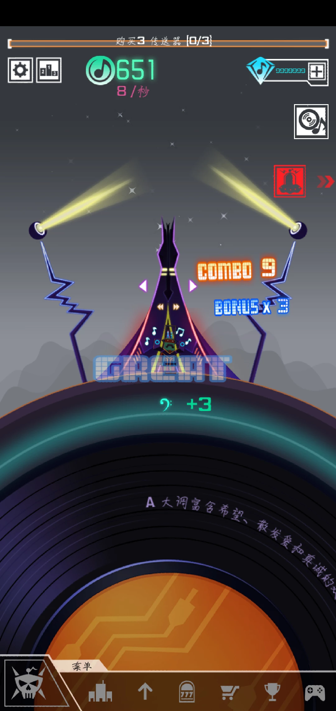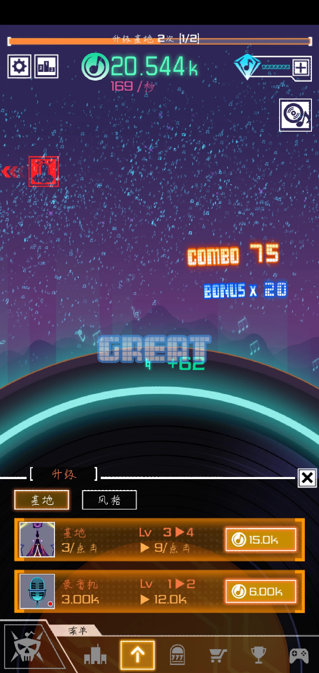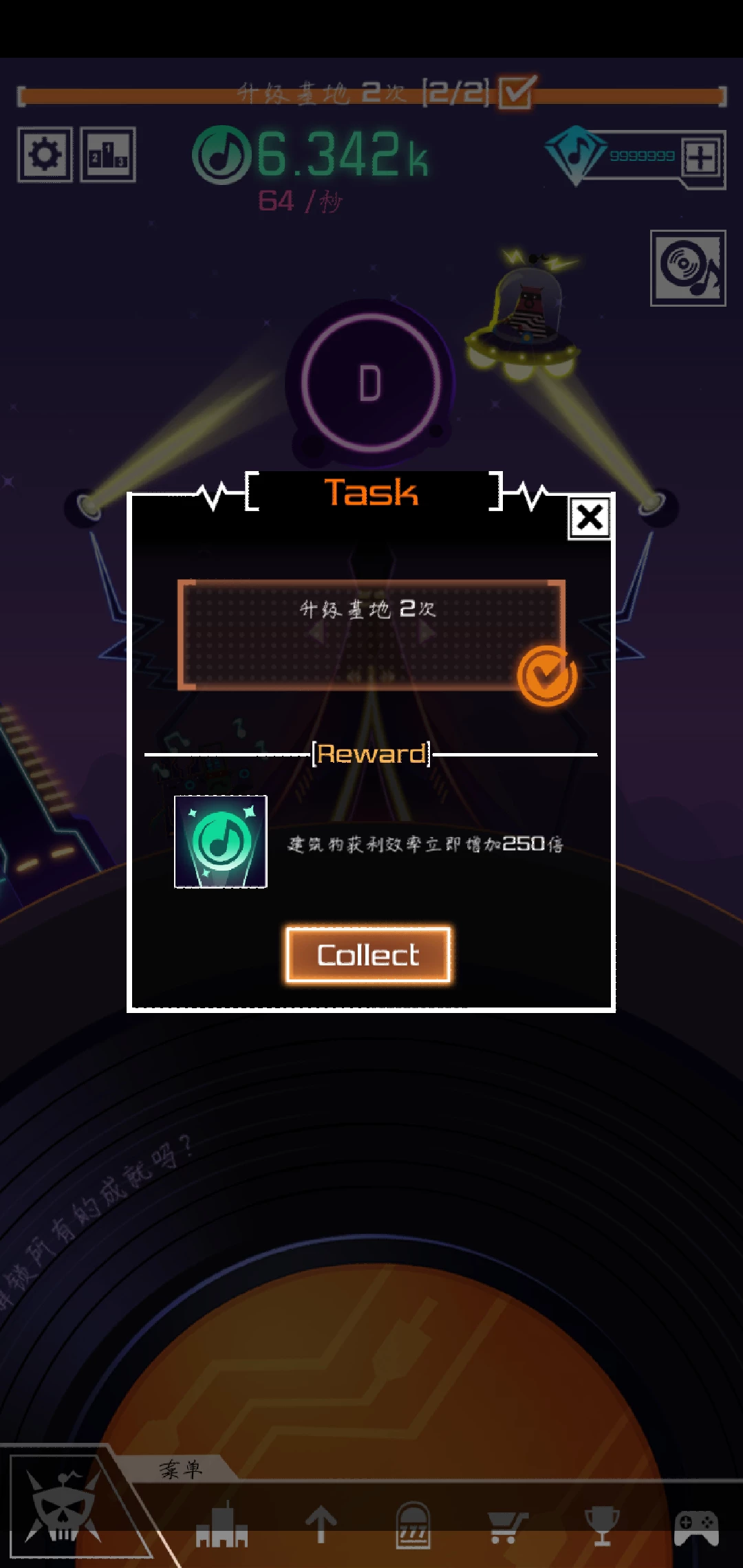 我们创建的是节奏星球,所以星球的外观就想一个滑盘(嗯。。我不太知道那个打节奏的人的专业术语),最重要的是建立起我们的基建,慢慢的获得金币,不过在我们这个节奏星球,金币都是音乐符号🎵,整个星球都充满了音乐的气氛。