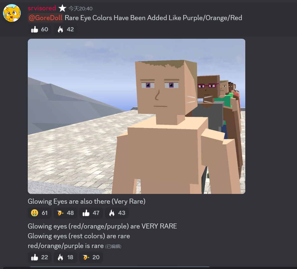 同为G沙盒开发者一员贴出了一些人物图片,并解释说:“罕见的眼睛颜色已被添加,如紫色/橙色/红色。