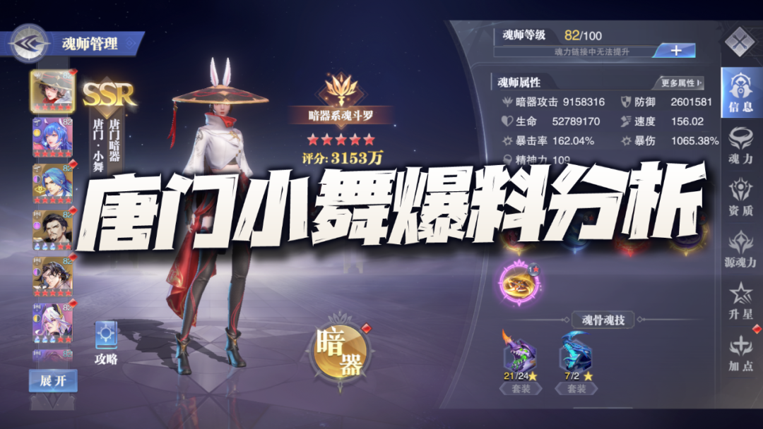 接着针对暗器魂师,不像一般魂师那样,其区别最大就在于一个【暗器百解】上,而唐门小舞的【暗器百解】可以总结如以下几点: