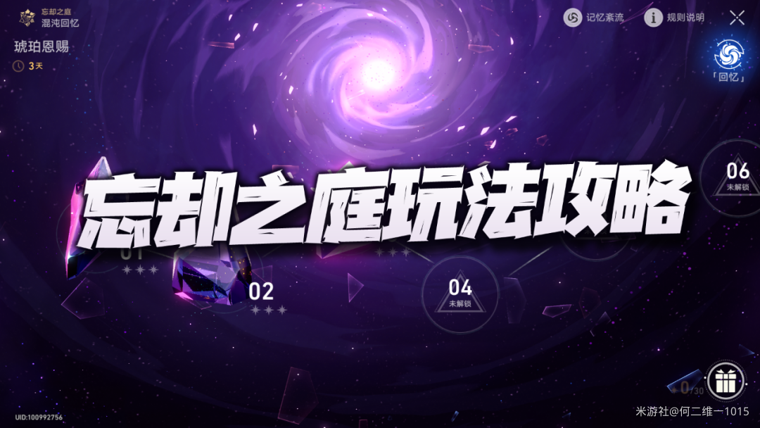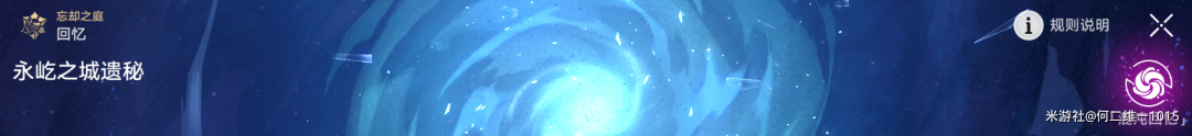 混沌回忆部分,这个部分有10个关卡,每个关卡同样有3星条件,共计可以拿到30星的奖励,且这个困难关卡内每周还会更新一个特殊的“记忆紊流”,会有一些buff效果,另外这个混沌回忆关卡会定期更新关卡和奖励,所以相当于混沌记忆的奖励是可以重复挑战获取的