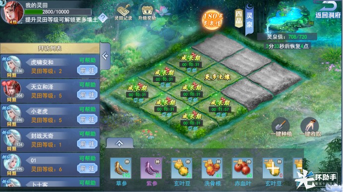 《奇缘幻境》洞府系统光环新资讯发布于 2023-05-15关注每个修仙者都会有一个自己的洞府,洞府包括炼丹、聚灵、经脉、炼器、灵田1. 灵田灵田等级越高种植的草药越多,草药在打BOSS中是会有些许掉落,玩家可以使用灵泉值来给种植的草药浇水,让它快速成长。2. 炼丹从灵田获得的草药可以练生命丹、攻击丹、防御丹、神效丹。服用丹药可以为角色提供属性加成。3. 聚灵阵会随着时间来获得灵气值,灵气值可以用于打通经脉,从中获得属性。