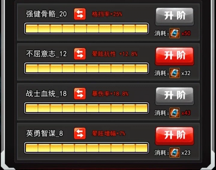 普通技能解析:横排低比例伤害提高格挡闪避这个就有点冲突了和泰迦一样闪避和格挡二选一提高格挡率,生存率提高,为一些不必要的伤害,到时候放大会更有效果,持续3回合。提高自身25%闪避率,加成效果都是三回合,所以相当于一个蓄力阶段可以叠加最高也就是3×25=75的格挡或者闪避但还是要选修的这个就看自己喜欢哪一条被动实战里的话格挡闪避反击都是可以触发的