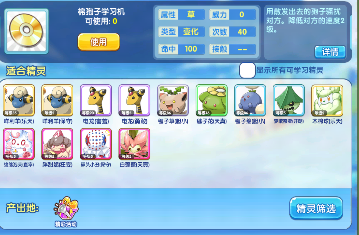 因为这个精灵他是可以学习棉抱子降低对方的速度