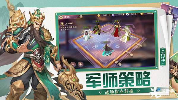 【养成】游戏内包含多种养成系统,全面提升战力数值。各种装备升级进阶,以及收集武将的乐趣体验,特色幻兽养成以及命格玩法,使得卡牌对战不再枯燥;【战斗系统】5v5的战斗布局,九宫格自由站位,操作更加灵活,本服以及多种跨服玩法,战斗乐趣直线提升。