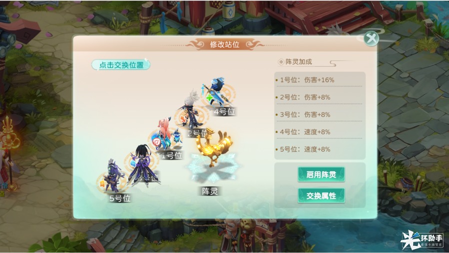 每个阵法不同的位置会给予数值上的加成效果。大佬们可以按照队伍的特征选择阵法和助战位置哦。