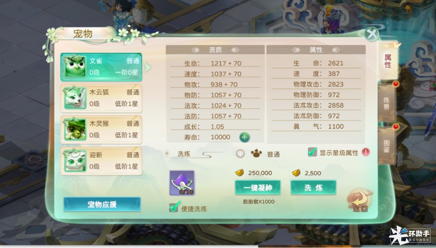 3、凝神宠物洗炼需要消耗洗髓液,洗炼过程中不会重新变回普通状态。