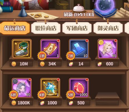 命运商店是唯一一个会刷新出随机道具的商店,建议每天都多刷几次!