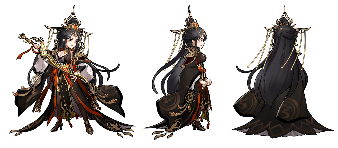 因为伏寿有着悲惨的经历,并且靠自己强大的心理素质坚持了下来,所以在设计攻击动作时故意去强化了pose的力度。而且考虑到她对力量与权力的追求,因此在技能表现上尽可能地去彰显某种华丽,有序的力量感。可最后的激发的剑雨却显得并不是那么有序,顺畅,反而去做了一些失控的爆炸路径,这也是对人物性格或命运的一种暗示。