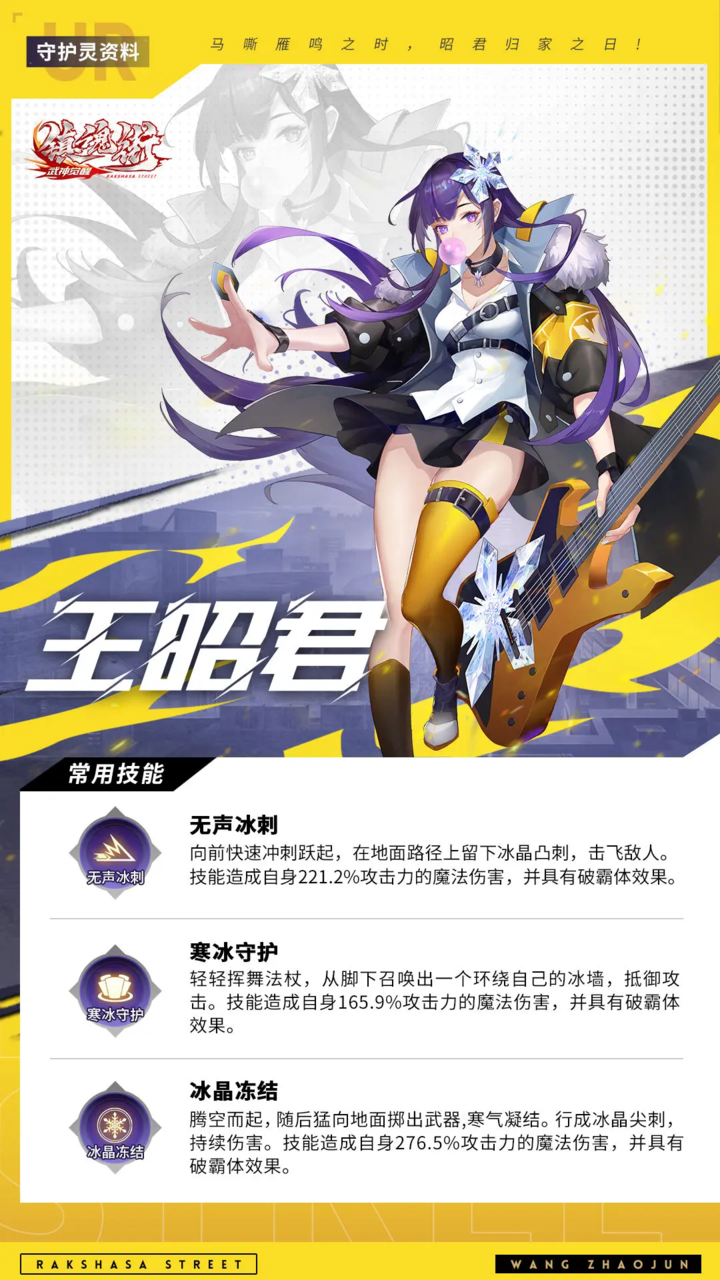 以上便是王昭君的有关资料啦!历史上的昭君出塞十余载,不仅适应了当地恶劣的生活条件,还为当地的居民带去了不少中原的技艺和文化,受到了当地人的认可和爱戴,《镇魂街:武神觉醒》中的王昭君则融合了昭君的坚执和少女的俏皮。