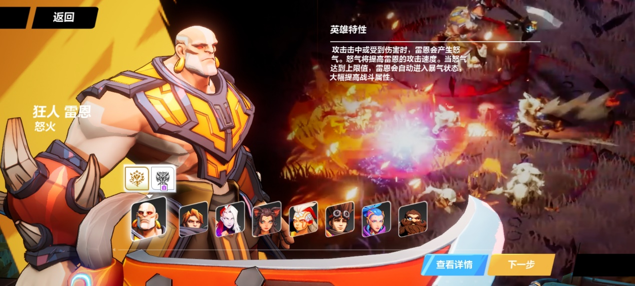 另外「狂人雷恩1」也在推荐列表里,普攻是范围伤害,而且会随着造成伤害和受伤积累怒气值,怒气越高,攻速和攻击范围就越大,一样是小怪数量越多打的越快,也算是比较适合开荒。喜欢近战群攻的玩家,效果会比较好。